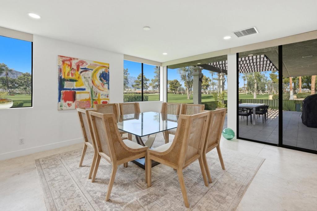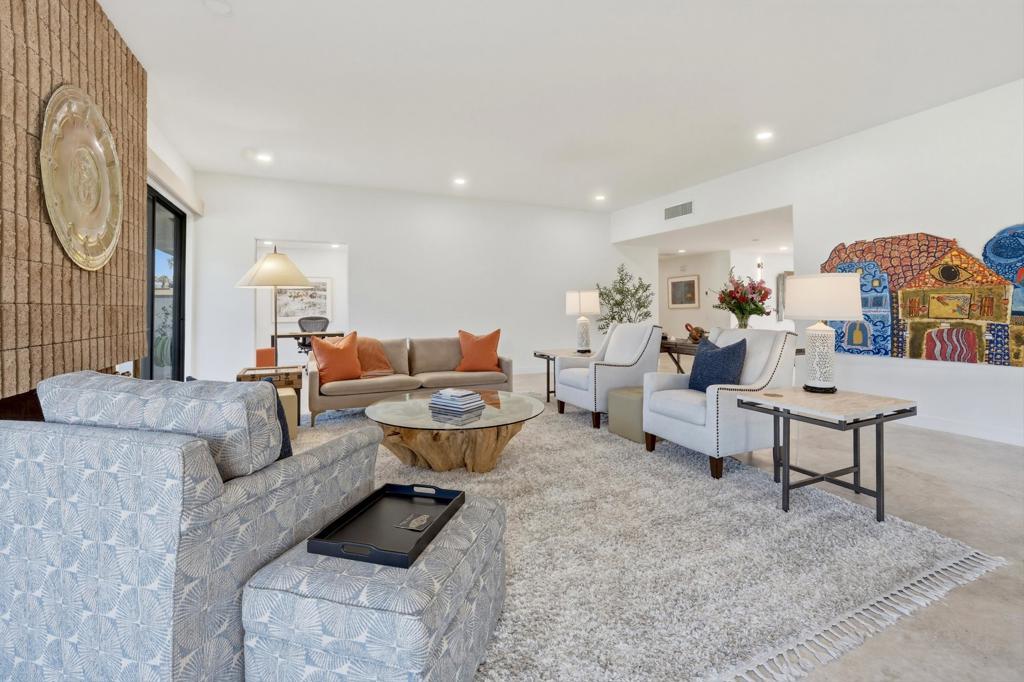 This home, with its spa-like atmosphere is an incredibly tranquil place to call home. Every surface has been upgraded from gallery quality level 5 wall finishes to imported flooring and wall tile. This meticulous remodel leaves no detail unturned.The high-end cook's kitchen with stunning oversized Taj Mahal stone waterfall island and backsplashes includes state of the art appliances such as a 36'' Freedom Thermador Induction cooktop with MoveMode(r), a sleek Thermador Masterpiece 30'' True Convection Double Oven with a Microwave/Speed Oven, and a Jenn Air side-by-side paneled, counter depth refrigerator with the newest black interior. Clean-up is a breeze with a Thermador fully integrated paneled dishwasher. Not to be forgotten, a cook needs their references and recipes! The kitchen is finished off with a floor to ceiling bookcase featuring a secret pantry for small appliances and extra storage! Adjacent to the kitchen is a comfortable dining area with floating sideboard, Taj Mahal backsplash and countertop along with pullout drawers. All 3 of the well-appointed large bedrooms include walk-in closets with built-ins and ensuite bathrooms that boast imported, textured tiles. All windows have motorized shades for your convenience and a new, mini-split AC in the garage for your summer comfort. Additional upgrades include updated plumbing and electrical, and a full home Life Source water filtration system. Step outside onto the wrap around terrace and take in the sweeping mountain views in the morning and unbelievable sunsets in the evenings! Conveniently located near the clubhouse, you can easily walk to meet up with friends for dinner and drinks. Located inside the gates of The Springs, you can enjoy an active lifestyle of golf, tennis, pickle ball and bocce or enjoy the fitness center, its classes, spa treatments and amenities. The beautiful clubhouse plays host to numerous club and social events year-round. This thoughtful and meticulous updated home leaves no detail unturned! Schedule your private showing today!
