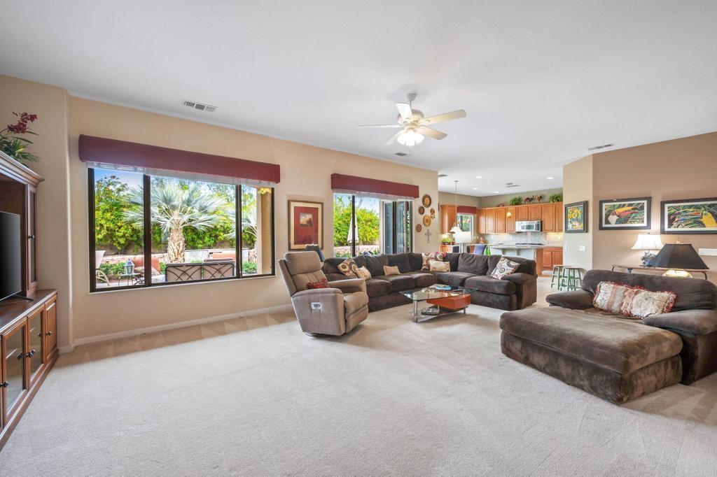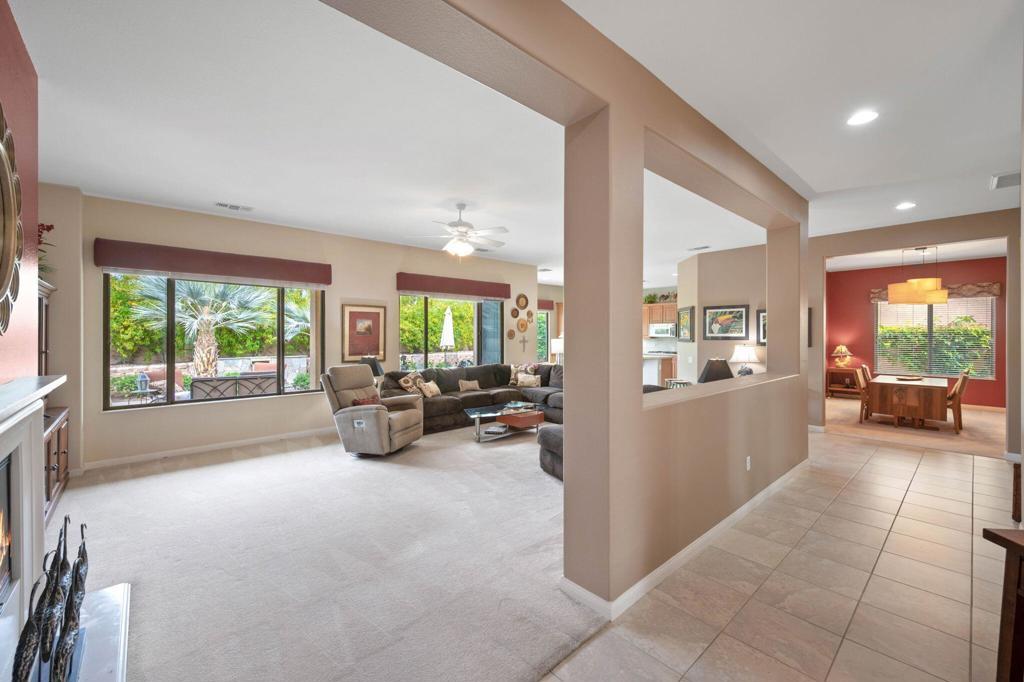 Price Improvement makes this lovely, well maintained home a very attractive purchase in Sun City Shadow Hills. This Terraza open floor plan features living space with 2 bedrooms, 2.5 bathrooms, and den. The open Great Room is enhanced by a fireplace, formal dining area, and kitchen is equipped with an island, butler's pantry, walk-in pantry, and a dinette, all offering views of the patio and backyard. The spacious primary suite includes a large walk-in closet and direct access to the patio and backyard via glass doors. The primary bath has 2 vanities, a walk in shower and soaking tub. Guest bedroom is privately located at the opposite end of the home. The den has custom cabinetry and desk space for two. The backyard and patio are complemented by a water feature, creating an inviting atmosphere suitable for relaxing or entertaining. The 2 car plus golf cart garage has epoxy finished floor. Recent updates include a new 4 ton HVAC (2025) and in the past 2 years air vents have been cleaned and the exterior of the has been home repainted. Sun City Shadow Hills 55+ Community offers access to two golf courses, clubhouses, pools, fitness center, tennis courts, pickleball facilities, and a variety of community and social events.