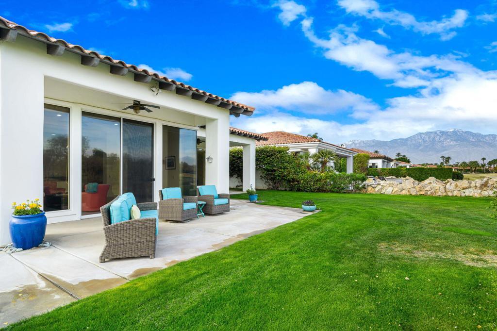 Fairway, Lake and Mountain Views highlight this Vintage Collection home in Legacy at Mission Hills Country Club. Incredible, expansive views of Mt. San Gorgonio, Mt. San Jacinto, a large lake and the 16th Fairway and 11th Green of the Pete Dye Challenge Course. Landscaped garden courtyard with room for casita. Large open floor plan with great entertaining spaces and 3 bedrooms each with an ensuite bath. The Great Room feature a step down granite clad wet bar and fireplace and Dining area with French doors to the courtyard. An open kitchen and family room features wall of glass highlighting the views, granite countertops and stainless appliances(Dacor, Kitchen Aid). The Primary Bathroom features a large walk-in closet, double vanity and tub and shower with granite and marble finishes. 2 guest bedrooms with newer carpet and ensuite baths provide great room for family and friends. Amazing mountain, lake and fairway views from the back terraces and room to add a custom pool and spa in the spacious backyard. Value Priced in Prestigious Legacy at Mission Hills, where HOA includes Social and Fitness membership to MHCC. Come home to your own resort lifestyle!