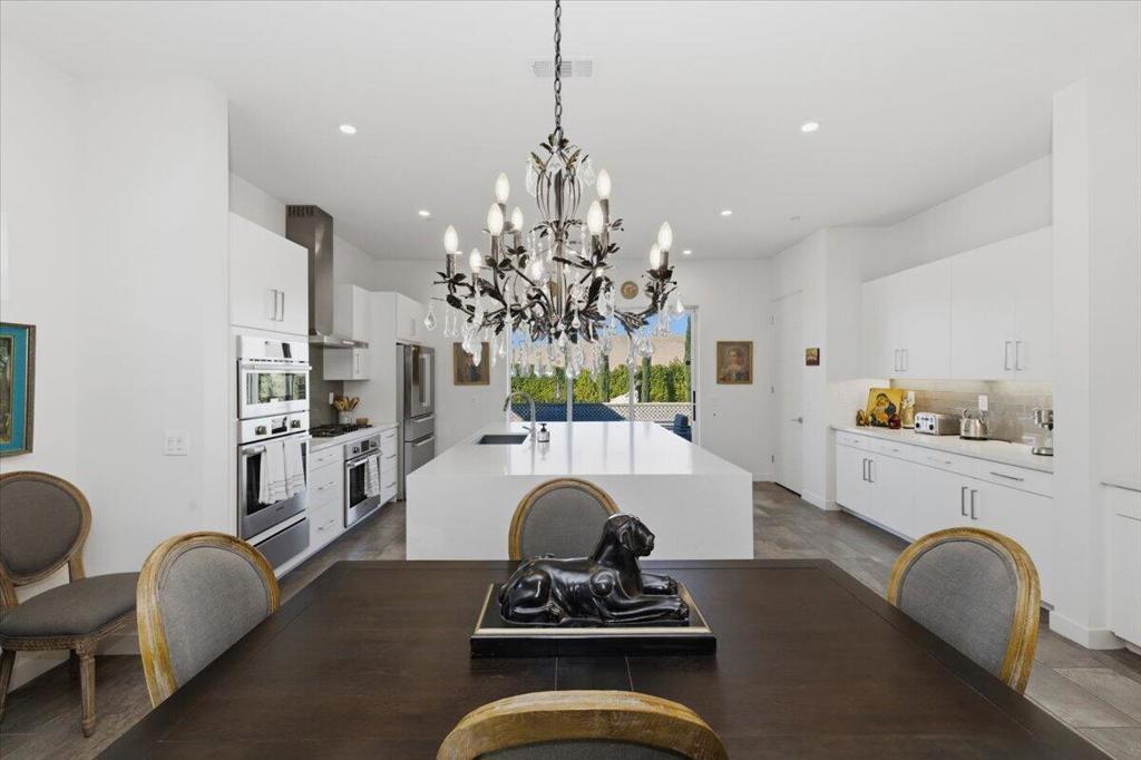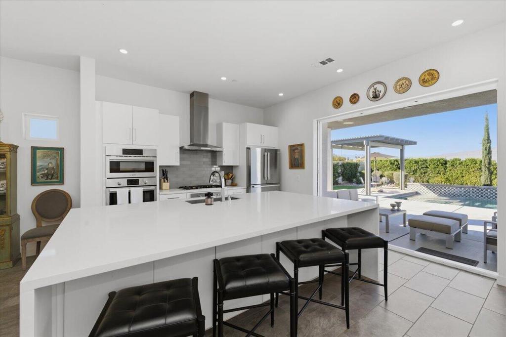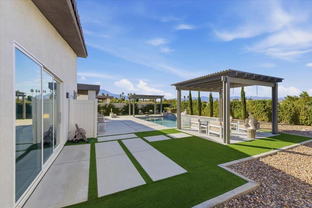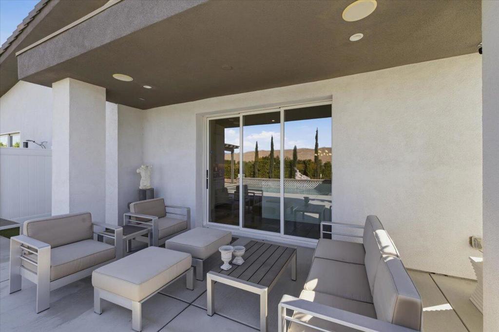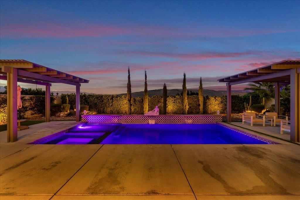 Tucked inside Iridium, a boutique gated enclave of just 27 New Century Modern residences in Rancho Mirage, this newer home channels the clean lines and easy elegance of classic desert design--reimagined for today's lifestyle. Inspired by the mid-century movement that shaped the Coachella Valley, this fully equipped mini estate delivers a polished blend of luxury, comfort, and effortless indoor-outdoor living.Inside, an open great-room layout is elevated by soaring 10-foot ceilings, recessed lighting, and expansive multi-slide doors that dissolve into two private outdoor patios--perfect for morning coffee, golden-hour cocktails, and everything in between. The resort-style backyard takes center stage with a Neptune-inspired saltwater pool and spa, outdoor shower, and fire pit, all framed by tranquil panoramic mountain views--including twilight skies with sightlines toward San Jacinto and Big Bear.Designed with privacy in mind, the home offers four bedrooms. The primary suite is a serene retreat with an oversized shower, accent-lit double vanity, and a generous walk-in closet. The gourmet kitchen flows seamlessly into the great room and wet bar, featuring top-tier stainless appliances and a quartz slab island--tailor-made for entertaining.Modern conveniences include a whole-home water purification + softener system, tankless water heater, smart lighting and home features, high-speed data wiring, and owned solar--a crisp, contemporary take on iconic desert living at its most refined.