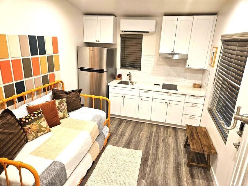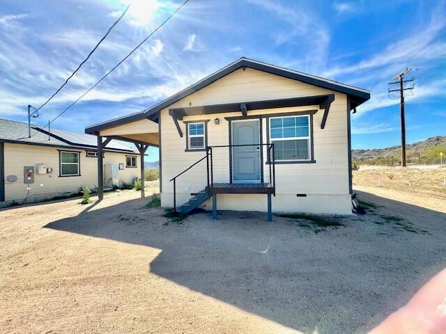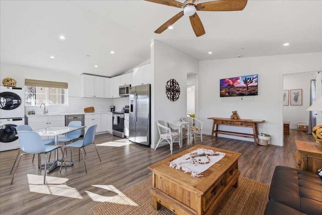 Welcome to Modern Desert Living - Designer 3-Unit Compound in the Heart of Joshua Tree. Built in 2023, this eco-conscious three-unit compound presents a rare turnkey investment opportunity just minutes from the entrance to Joshua Tree National Park. Thoughtfully designed for flexibility and strong income potential, this modern desert retreat blends style, sustainability, and functionality.The property includes: Main Residence: 2BD/1BA | 768 sq ft -- ideal for an owner-occupant or premium long-term rental ADU #1: 1BD/1BA | 316 sq ft -- stylish and well-appointed ADU #2: Studio 1BD/1BA | 205 sq ft -- compact, efficient, and thoughtfully designedEach unit fully furnished with high-end finishes, full kitchens, designer bathrooms, and in-unit laundry--perfectly suited for short-term or mid-term rental strategies. The flexible layout allows investors to maximize cap rate potential or owner-users to live in one unit while generating income from the others.Designed with sustainability in mind, the compound operates with a low-to-zero carbon footprint with owned solar panel system, an EV charging station and two covered carports. The spacious lot features unobstructed mountain views, and ample room for an Airstream or RV.Enjoy tranquil desert living, expansive night skies, and close proximity to local dining, entertainment, and outdoor recreation. This stunning modern compound offers a rare combination of serenity, design-forward living, and income-producing potential in one of Joshua Tree's most desirable locations. Call today for your private showing!
