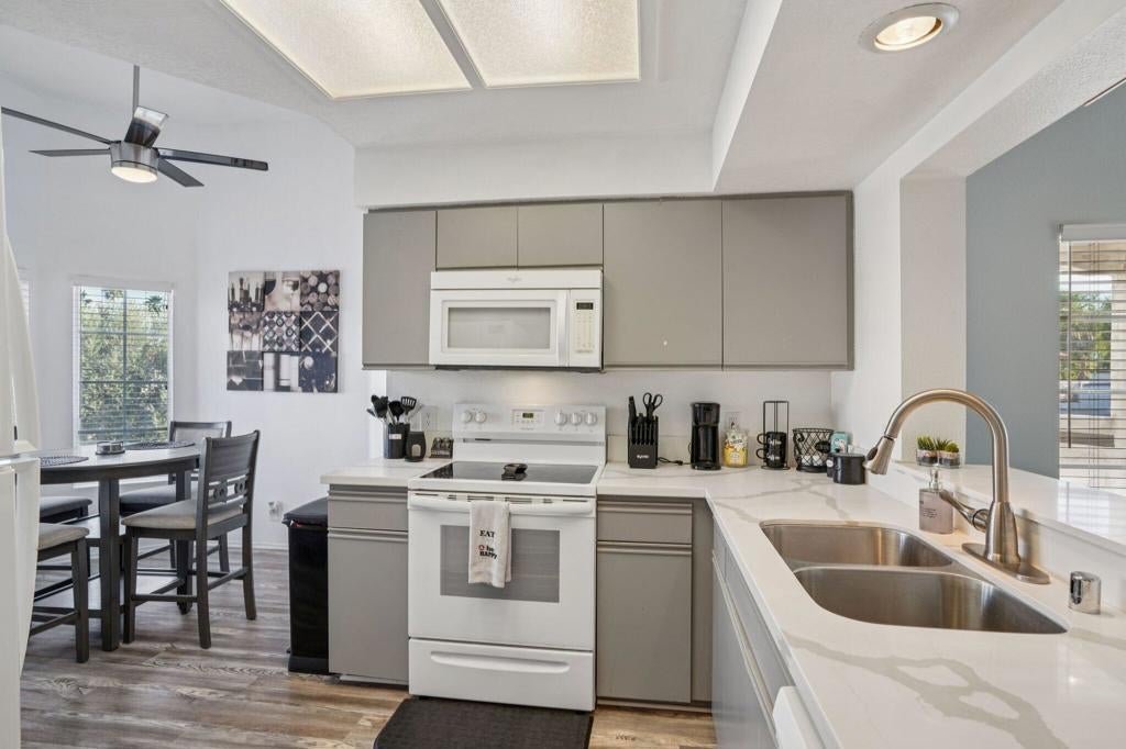 Priced at $339,000 and currently the lowest priced home in guard gated Desert Falls Country Club, this turnkey upper level condo offers exceptional value and a two car garage. Featuring updated flooring, refreshed lighting and ceiling fans, updated plumbing fixtures and hardware, and a modern neutral interior palette, the home presents clean and move in ready. The kitchen showcases designer quartz countertops and generous cabinetry, opening to a spacious living area with fireplace, built in dry bar, and sliding doors to a private balcony overlooking greenbelts and pool views. The primary suite offers dual closets and en suite bath, while the second bedroom and full guest bath provide flexibility for guests or office space. A true laundry room, not just a closet, adds everyday convenience. Being offered furnished with well coordinated furnishings, this property is ready for immediate enjoyment. Desert Falls offers 24 hour guard gate, championship golf, clubhouse, fitness center, tennis, pickleball, and multiple pools and spas. HOA dues include exterior maintenance and access to these resort style amenities, creating a lock and leave lifestyle at one of the most competitive price points in the community.