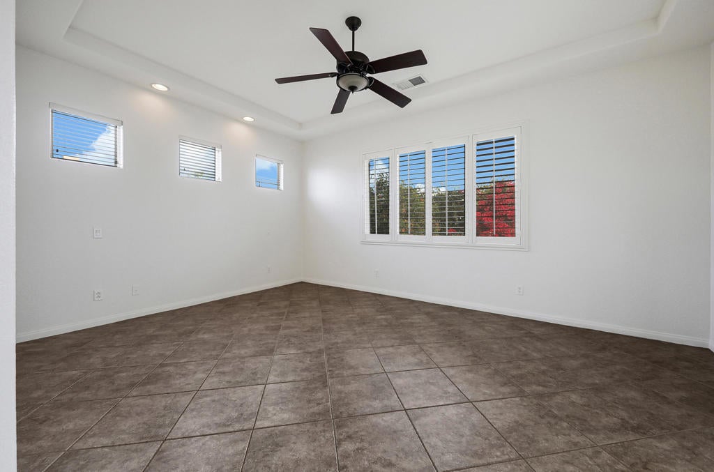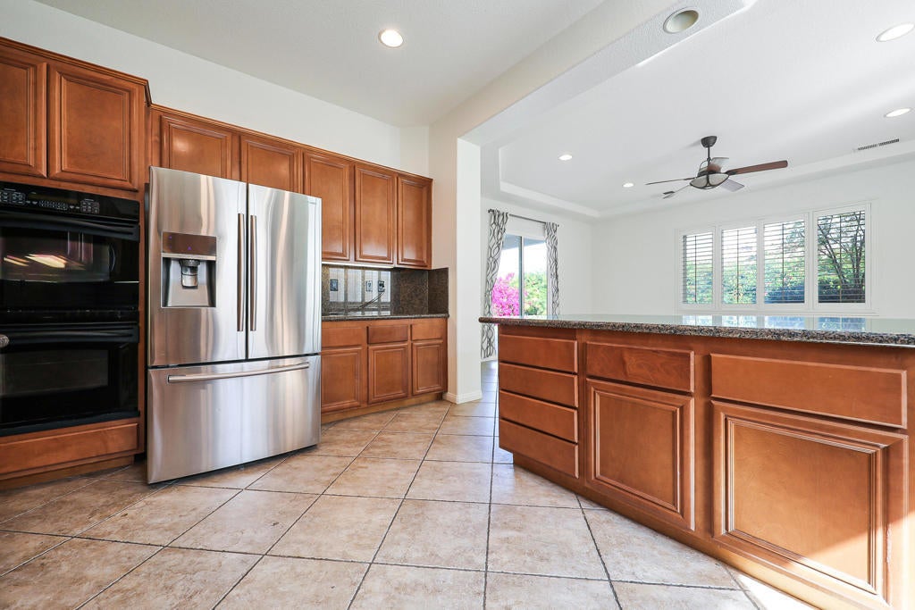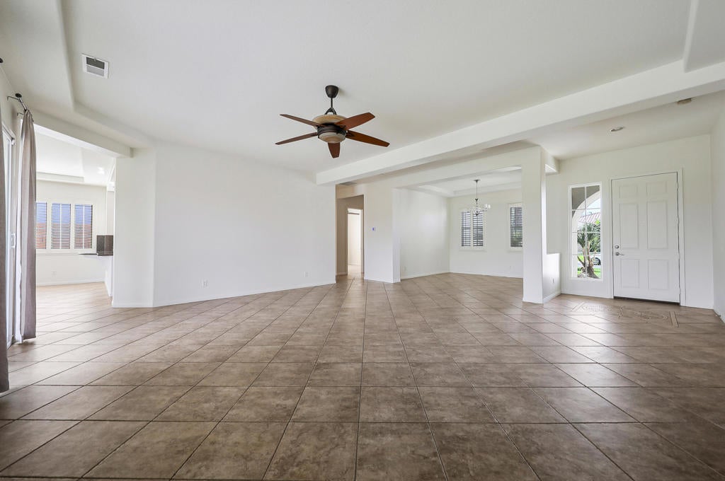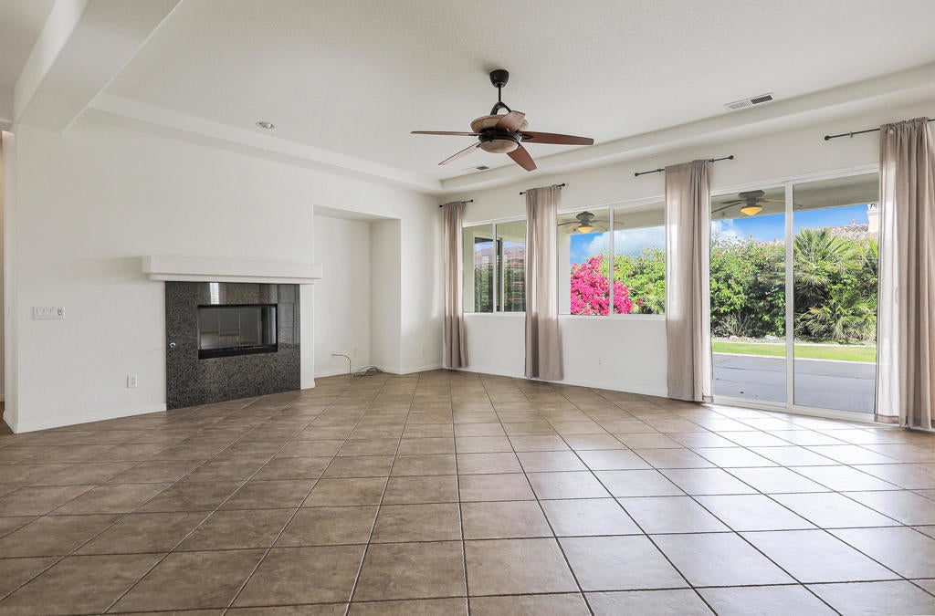 La Quinta Del Oro, North La Quinta, across from Indian Wells Tennis GardenLocated in a true desert paradise community! New AC unit installed in 2025. This light filled 3BD, 3BA home offers a spacious, versatile bright floor plan with two private suites. The primary suite features dual vanities, a Jacuzzi soaking tub, and separate shower. Enjoy a separate living room with fireplace, additional family room, and flexible space for formal dining, den, or office. The living room floor plan opens up to the kitchen with large counter tops, stainless steel appliances, window shutters, cover backyard patio, laundry room, and attached garage complete the home.Prime location near world class tennis, golf, dining, and shopping in sought after North La Quinta.