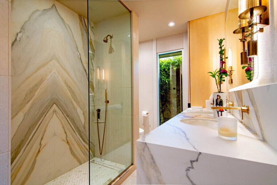 Situated on Cactus -- the most desirable street in Deepwell Estates -- this extraordinary residence offers a masterclass in architectural presence, refined design, and resort-caliber living. From the moment you approach, the dramatic front entry and clean architectural lines command attention, setting the stage for a home that is as sophisticated as it is welcoming.Remodeled in 2006/2007 with a meticulous eye for detail, the interiors reveal a stunning open-concept floor plan designed for both grand entertaining and intimate relaxation. The expansive great room is anchored by a striking stone fireplace, creating warmth and visual drama while seamlessly connecting living, dining, and kitchen spaces.The chef-inspired kitchen was thoughtfully designed with both beauty and performance in mind -- perfectly positioned to remain at the heart of gatherings. Automated interior blinds on select windows provide effortless comfort and privacy, enhancing the home's modern convenience.The intelligently designed three-bedroom layout ensures exceptional separation and privacy. The primary suite serves as a serene retreat, complete with a sitting area and a custom closet featuring a discreetly integrated washer and dryer for ultimate convenience. Guest bedrooms are positioned in opposite corners of the residence, each with adjacent baths, offering privacy and comfort for family or visitors.Step outside to a setting that rivals a private boutique resort. Lush landscaping frames a sparkling pool and elevated spa, while retractable awnings provide elegant shade on demand. Whether basking in the desert sun, entertaining beneath the stars, or enjoying quiet mornings with mountain views, the outdoor living spaces are simply unforgettable.