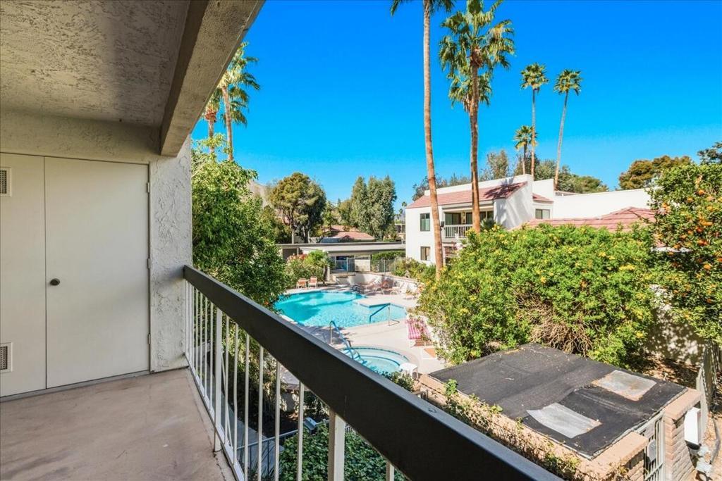 If you are looking for a Palm Springs home to make over into your own, this wonderful 2-bedroom/2-bath condo in Riviera Gardens is the perfect place! This 2nd-floor, north-facing unit looks over the pool area and has peekaboo views to the western mountains from its large balcony. Well-maintained, the condo has a newer HVAC system and a laundry closet inside the unit. Put your own design stamp here, with a fresh coat of paint and updating the kitchen and bathrooms, which will only add value! Close to the Uptown Design District and mere minutes to all the restaurants, bars, and fun of downtown Palm Springs. Grocery shopping is only a mile away. The monthly HOA fee pays for the gated perimeter, landscaping, multiple pools/spas, utilities, and one dedicated, covered carport space: the homeowner is only responsible for electricity, gas, and internet/cable. Riviera Gardens sits on FEE SIMPLE land (land that you own), so no lease land payments. Put your design hat on and bring your creativity when you come to view this spacious condo, which has so many possibilities!