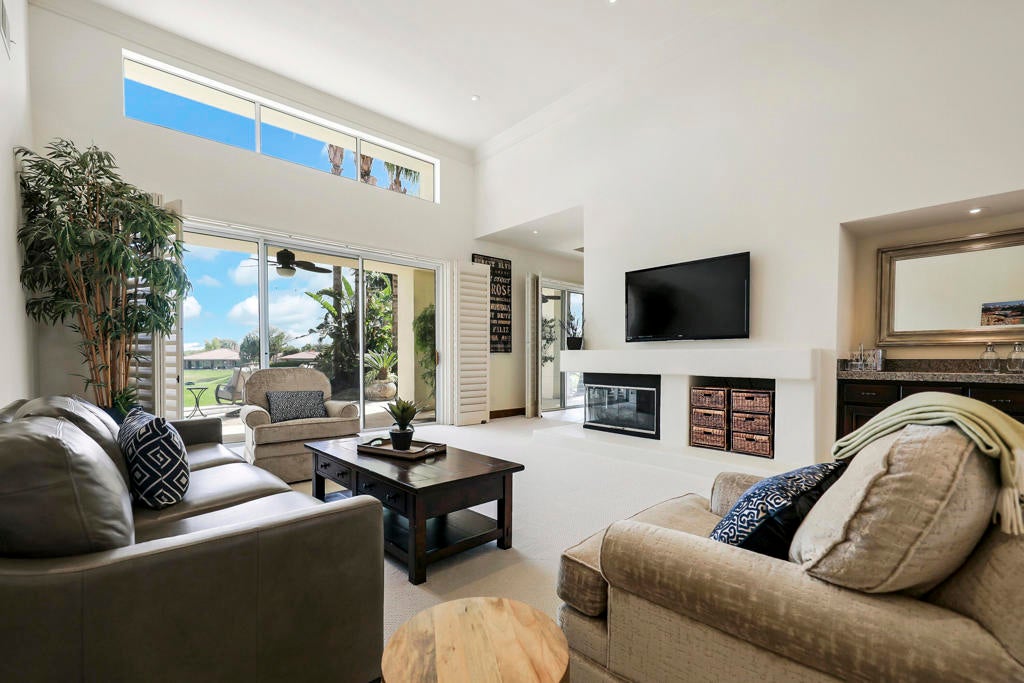 One of the best priced 4 bedroom home at PGA West. We're talking about soaring ceilings, tons of natural light, and a literal front-row seat to the Nicklaus Private golf course. Plenty of room to add a pool, spa and BBQ island. See photo.The kitchen is a total showstopper--it's been updated and features Viking appliances, granite countertops, double islands (yes, two!), so there's plenty of room for morning coffee, and wine night all at once. Plus, every single one of the 5 bathrooms has been remodeled, so you don't have to lift a finger. The best part? The primary suite is a total retreat. The ensuite is all marble with a huge steam shower--it's basically like having a private spa day every morning. Custom knotty alder doors and trim, crown moulding, brand new washer and dryer, Culligan water softener system and BBQ are more added features.Just mere steps to the many community pools. Unbeatable views of the fairway.This isn't just a house; it's a lifestyle. Come see it before someone else does!