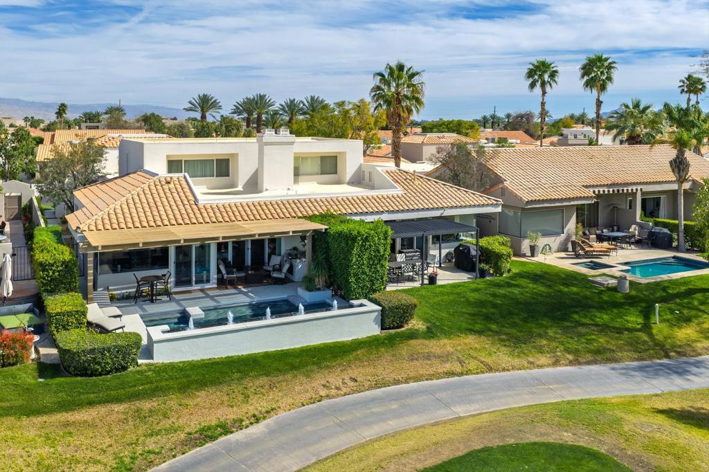 Welcome to your Ultimate Desert Sanctuary! Experience elevated desert living with breathtaking panoramic views of the majestic San Jacinto Mountains, shimmering lake vistas, and the lush fairways of the renowned Pete Dye Course at Westin Mission Hills. Situated on fee land, this gorgeous, fully remodeled home blends refined elegance with effortless comfort, offering a rare opportunity to own in a premier golf resort setting. This thoughtfully designed residence features three spacious primary suites with exceptional bedroom separation for privacy, along with four beautifully appointed bathrooms. The third bedroom functions as a private guest casita with its own separate entrance, creating an ideal retreat for visitors. A flexible fourth bedroom serves perfectly as an office, den, or game room with bar. A second-level guest ensuite adds even more versatility to the home's well-planned layout. The designer kitchen showcases quartz countertops and seamless, frameless windows that frame endless views, allowing you to enjoy the stunning scenery from the heart of the home. Custom roller shades, a formal dining room, and an expansive living room complete the sophisticated yet welcoming interior. Recent upgrades further elevate this exceptional property, including new flooring throughout, new ceiling fans, new TVs, and new toilets. Major system improvements include brand-new HVAC units for optimal year-round comfort. Additional enhancements feature custom roller shades and sliding glass doors, enhancing both style and energy efficiency. Step outside to your private oasis, where a newly updated pool area shines with a new pool pump, filters, tile, and stylish patio furniture--perfect for entertaining or relaxing while soaking in the spectacular mountain and fairway views. The home also offers a spacious two-car garage plus a separate golf cart garage, providing ample room for vehicles, recreational equipment, and plenty of additional storage space. This is desert resort living at its finest--luxury, privacy, functionality, and unforgettable views all in one extraordinary home.