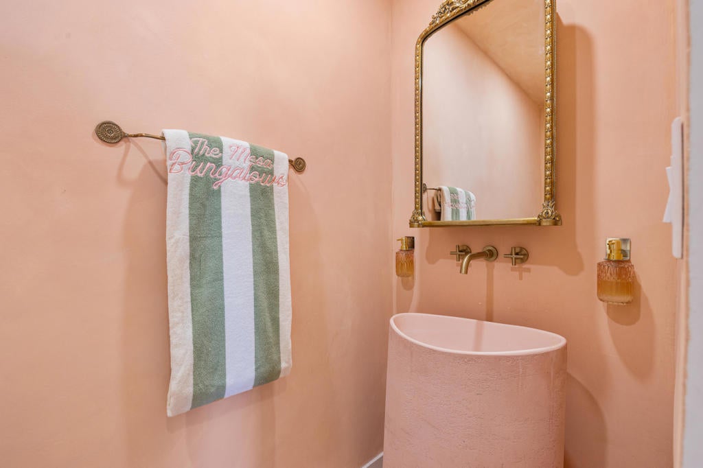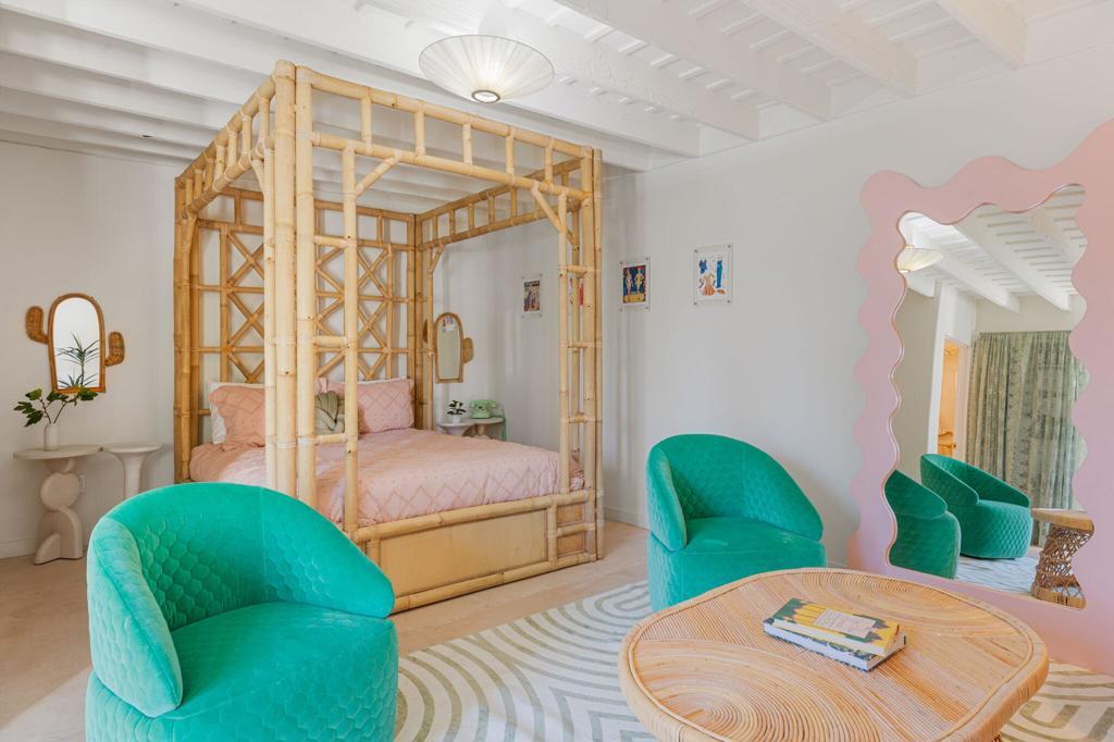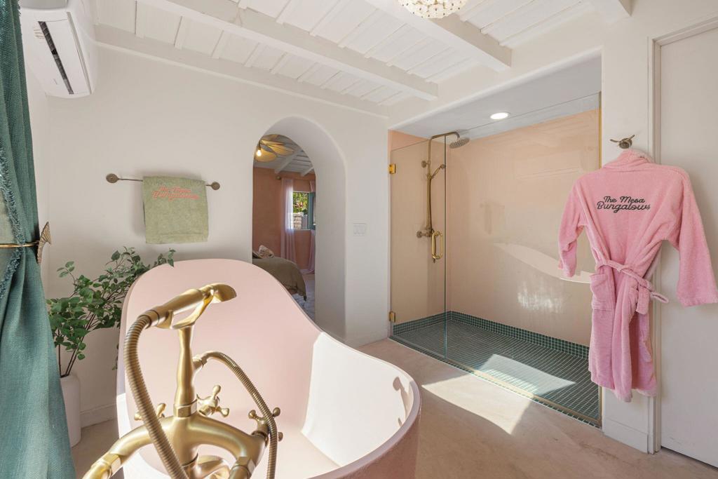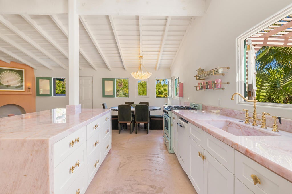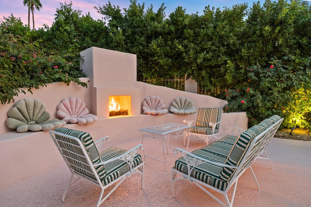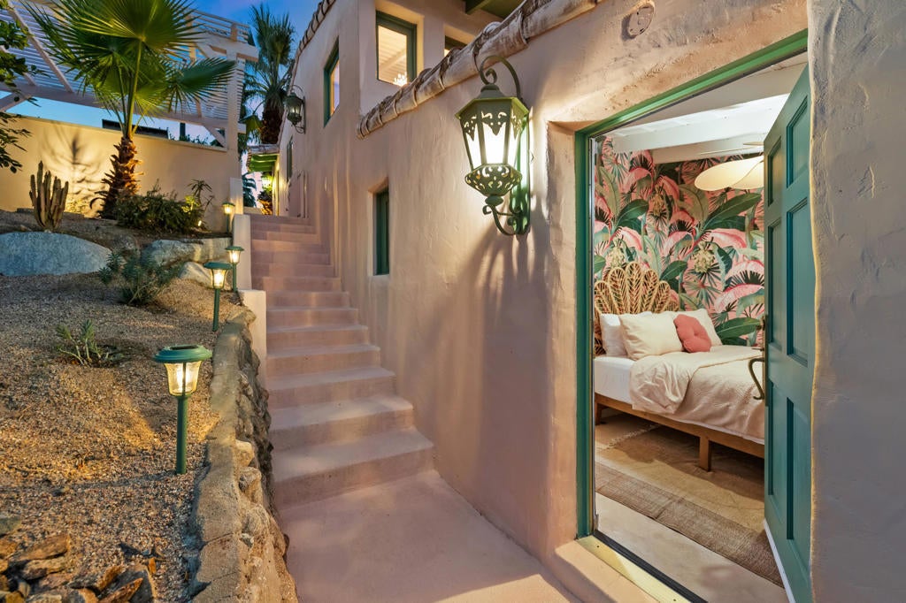 The Mesa Bungalows is a bold and iconic Palm Springs estate, privately gated and set in the coveted neighborhood of The Mesa in South Palm Springs. Originally built in 1937, this Spanish style villa was designed as both a showpiece and a resort-style retreat, with a vintage pink and green palette inspired by the Beverly Hills Hotel and Jayne Mansfield's iconic Pink Palace. The outdoor experience is nothing short of extraordinary--featuring a custom putting green, a pink kidney-shaped pool and spa with a cascading rock waterfall, an ornate gazebo, and water fountain. An upper level entertaining space showcases a built-in BBQ, fireplace, and a daybed shaded by large pink metal palm fronds. Inside, the home continues its unapologetically chic aesthetic with a fully curated pink interior. The kitchen is outfitted with statement-making Smeg appliances and bold pink quartz countertops, blending playful glamour with modern sophistication. Four separate en-suite bedrooms sprawl the two levels of the home, including one with its own private sun deck overlooking the property. Every detail has been carefully considered to celebrate color, design, and the indoor-outdoor lifestyle Palm Springs is known for. Striking, expressive, and undeniably exclusive, Mesa Bungalows is not just a home--it's a destination, a statement, and a true Palm Springs original perfect for short-term rentals or a private getaway. Schedule your tour today!