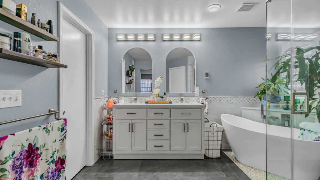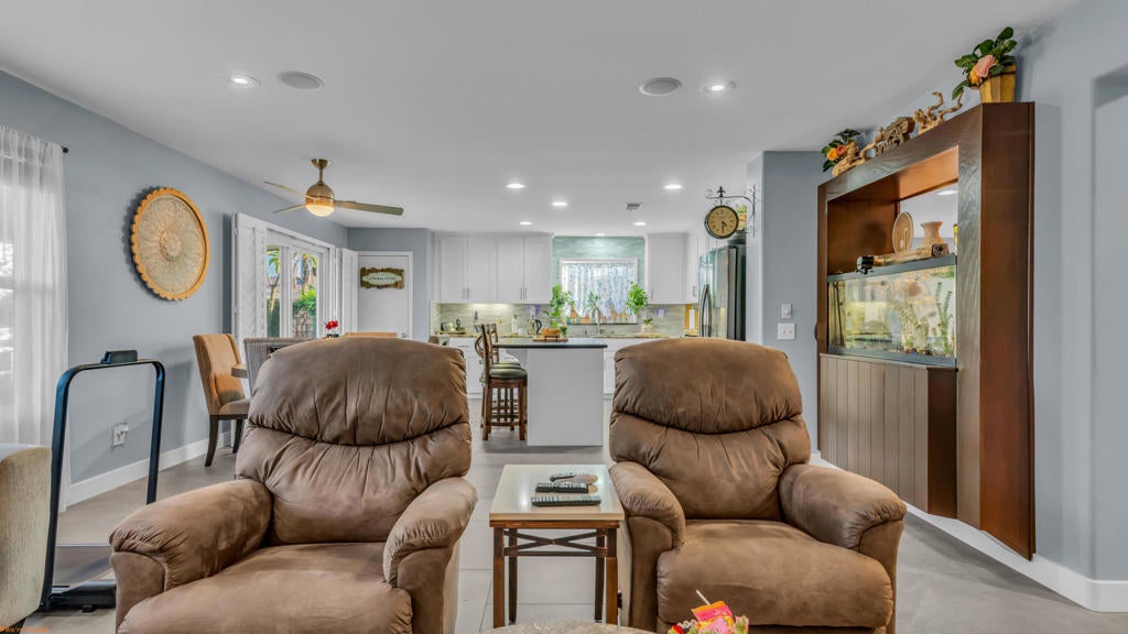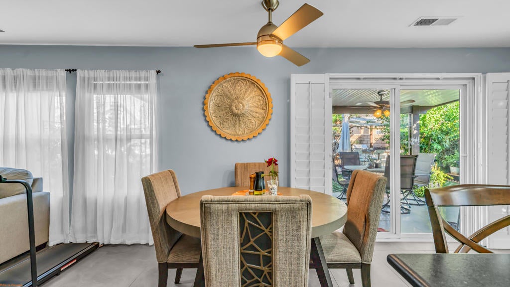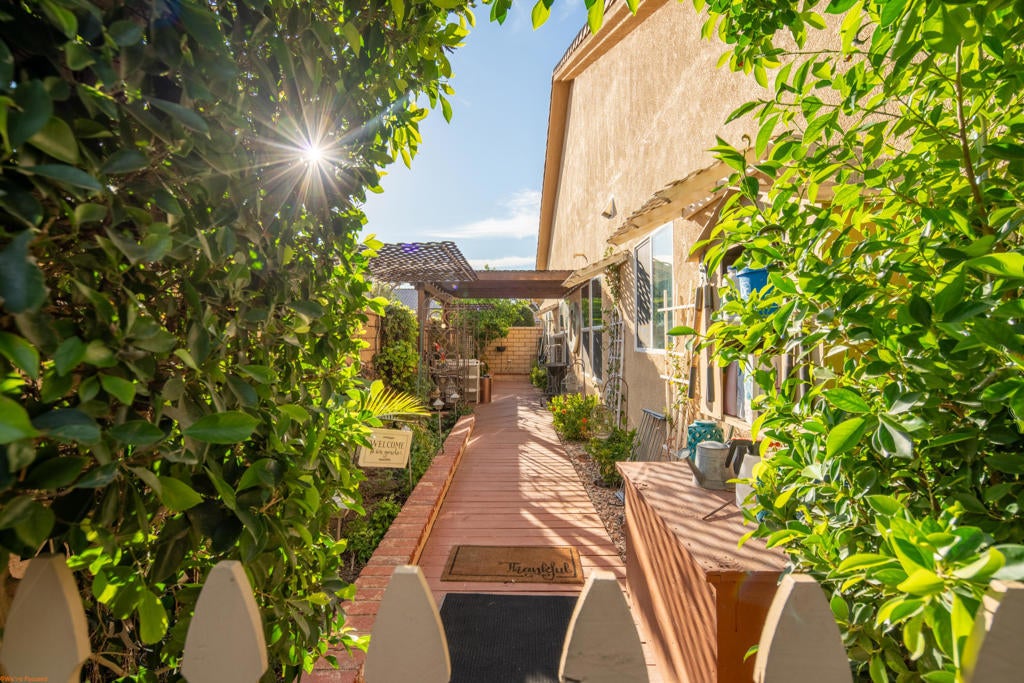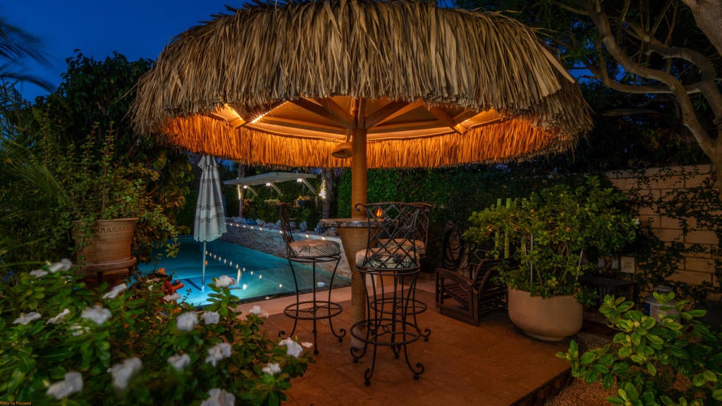 Beautiful and truly one of a kind home located in Indio offering 5 bedrooms and 4 bathrooms with two spacious living areas, perfect for comfortable living and entertaining. The property also offers RV parking and showcases extensive upgrades throughout with exceptional indoor and outdoor features.Inside the home you will find large porcelain flooring, custom finishes, smart switches in the front of the home, a built in sound system in the main living areas and primary bedroom, and a custom entertainment wall that creates a stunning focal point in the living room. The upgraded kitchen features granite countertops, a trash compactor, wine mini fridge, and a unique built in aquarium that can be enjoyed from the dining area and main living space.The primary suite offers a luxurious retreat with heated floors in both the bedroom and bathroom, porcelain tile shower walls, a freestanding soaking tub, and quartz countertops.The backyard is designed for true resort style living and entertaining. Enjoy the infinity edge pool with a chlorine free filtration system, solar heating, massage jets, waterfall feature, and travertine perimeter. The outdoor area also includes a full outdoor bathroom with shower, perfect for guests and pool use. Entertain family and friends with the fully equipped bar and grill area featuring a charcoal BBQ, gas grill, pizza oven, and mini fridge. A beautiful palapa with misting system and lighting provides a comfortable shaded space for outdoor gatherings.Additional features include travertine patios, cantera stone pathways, artificial turf, wood deck areas, garden beds with automatic watering system, and several fruit trees including lemon, orange, tangerine, and tangelo. The property also offers RV access with a paved driveway and electric gate.The garage features porcelain flooring, built in shelving for storage and organization, and a swamp cooler.This unique property combines luxury upgrades, resort style outdoor living, and functional space for a variety of lifestyles. A rare opportunity to own a truly special home in Indio. See attached upgrade list.