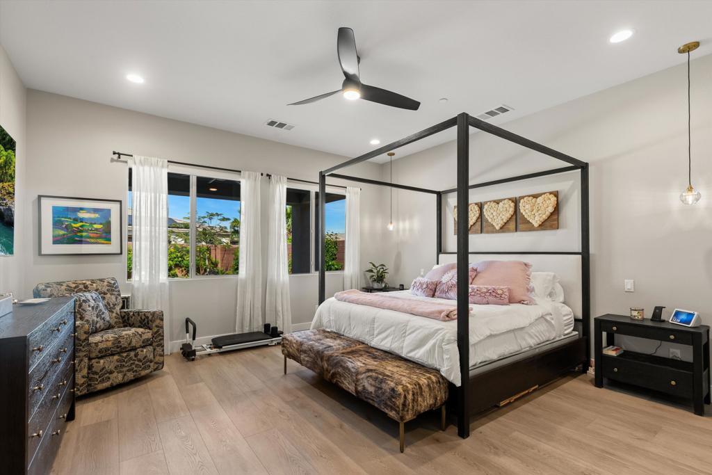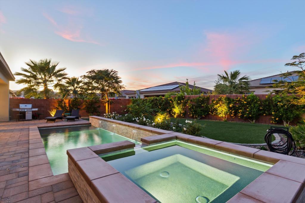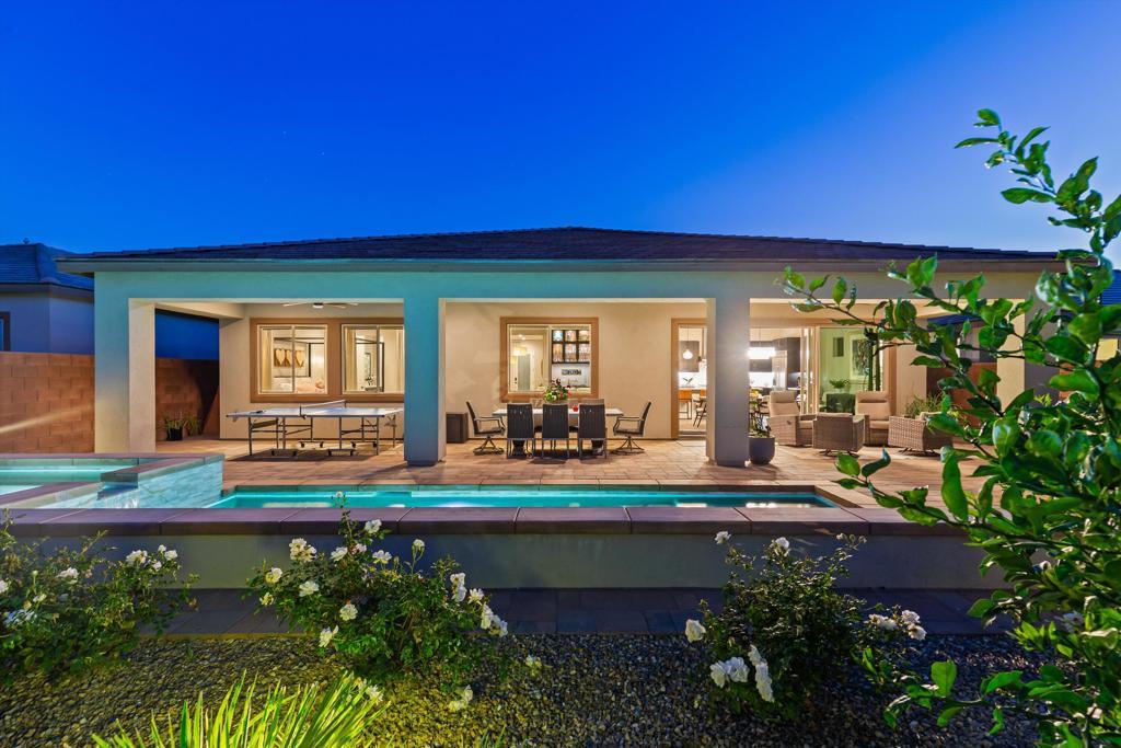 Located within the vibrant Trilogy Polo Club community, this beautifully appointed 3-bedroom, 3-bath residence, built in 2023, sits on an oversized lot and offers a seamless blend of modern design, comfort, and resort-style living. An open-concept floor plan centers around a spacious living area with a dramatic triple slider, opening directly to the professionally landscaped backyard, creating effortless indoor / outdoor flow. The chef's kitchen boasts an oversized island, six-burner gas range, and a custom dry bar just off the kitchen, creating a perfect space for entertaining. Enjoy the backyard with large private pebble-finish pool and spa (with removable pool fence), covered patio for shaded dining, and loads of colorful flora. The large private primary suite overlooks the pool and includes a spa-like bath with dual vanity, walk-in tile shower, a large walk-in closet designed by California Closets. Two spacious guest rooms and baths offer plenty of private space for visiting guests to unwind. The two-car garage plus dedicated golf cart bay features epoxy floors and built-in shelving, providing both style and function. With its oversized yard, newer construction, and prime location within Trilogy Polo Club, this home offers an exceptional opportunity to enjoy the best of desert living. Additional features include automated blinds in the living room, solar, tankless water heater, garage mini-split, and color-changing LED lighting accents the home's exterior, creating a striking presence after sunset. Polo Club membership available to transfer for a fee and gives you access to fitness center, pickleball, tennis, and all the other perks available. The best of desert living awaits!