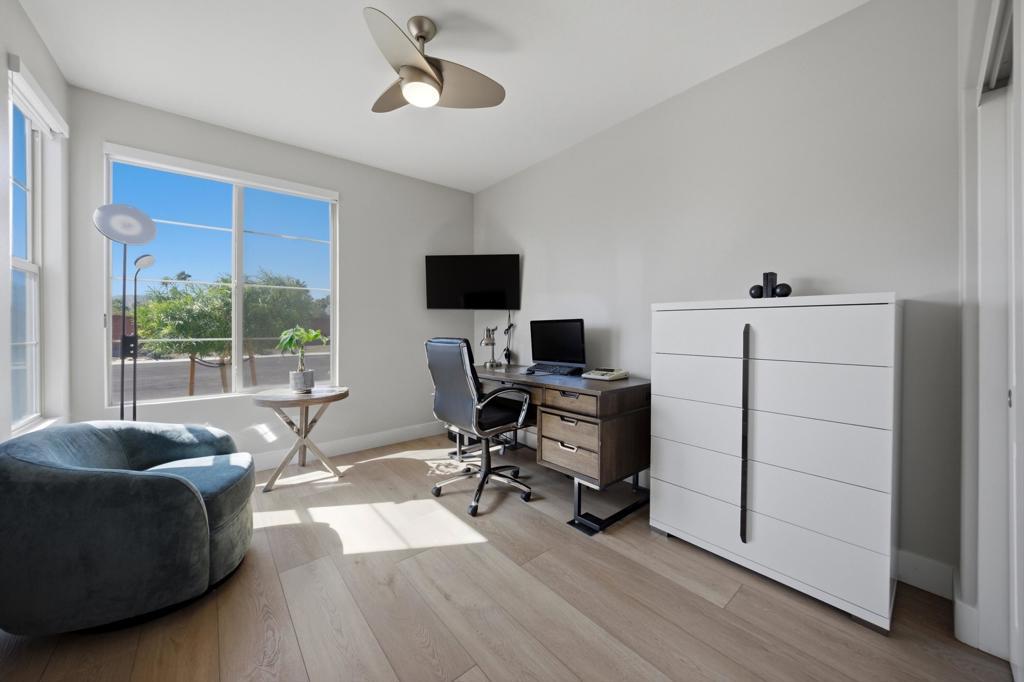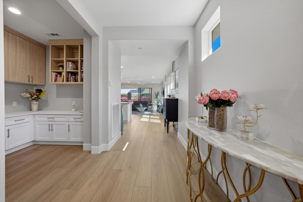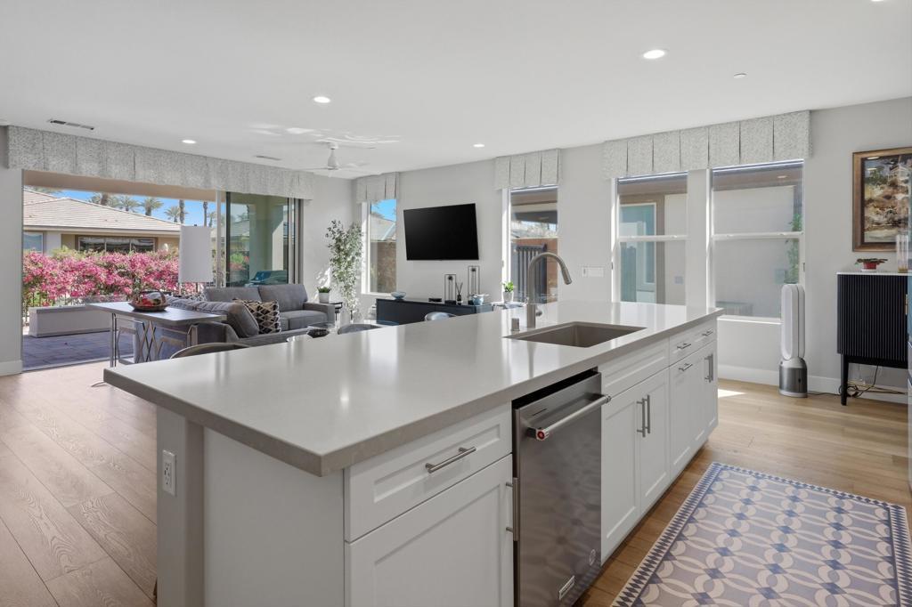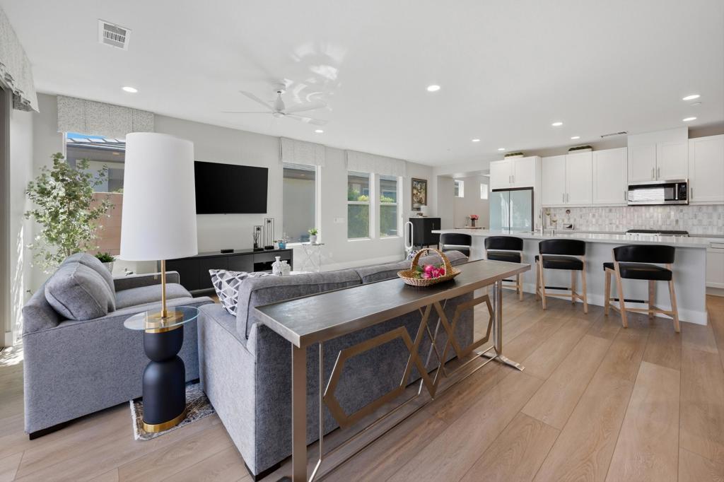 Premium Homesite on a Quiet Cul-De-Sac Overlooking Walking Path with Sunny East Facing Exposure. Light, Bright & Immaculate...This Practically NEW Pristine Clean Evia Model (2BR/2BA + Office/Hobby Room | 1,542 Sq. Ft.) is Move In Ready! Formerly a Designer Home, the materials and options have been carefully selected to create a warm, neutral palette ready for your own style and decor. The spacious great room features a large rolling wall of glass leading to the covered patio with built-in fire pit. The kitchen features high end appliances, upgraded cabinetry with soft-close doors and drawers and quartz countertops. The spacious primary bedroom with custom window coverings, walk-in closet and dual vanities is located opposite the guest bedroom and bath. Off the entry you'll find a cozy work station / hobby room with built-in desk and custom cabinetry. Whether you're looking for your forever home or desert vacation home, this cozy home checks all the boxes. The solar lease drastically offsets the elctric bill. Polo Club Membership is available to transfer. Schedule your tour today!