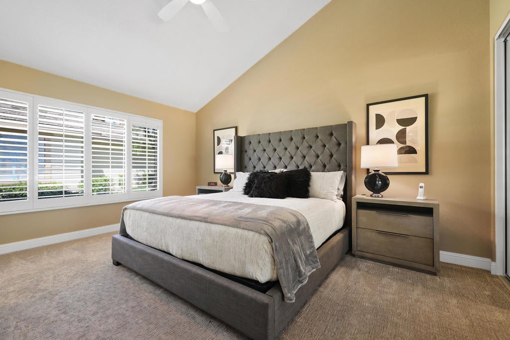 Beautiful golf course, lake, and mountain views set the stage for this peaceful retreat. This 2-bedroom, 2-bath home with an additional bed in the den area.Located just moments away from two heated pools and jacuzzis, the home offers a quiet setting where you can watch golfers attempt to clear the lake on their way to the 5th hole green.Newly furnished and thoughtfully appointed, all furniture and bedding were purchased in 2023. Each bedroom and the living room feature wall-mounted TVs. The fully stocked kitchen makes it easy to prepare your own meals, or you can take a short trip to El Paseo to enjoy its many shops, restaurants, and bars.This single-story end-unit townhome lives like a single-family home. Enjoy your morning coffee on the back patio while taking in the views as golfers pass by. Don't miss this rental opportunity!