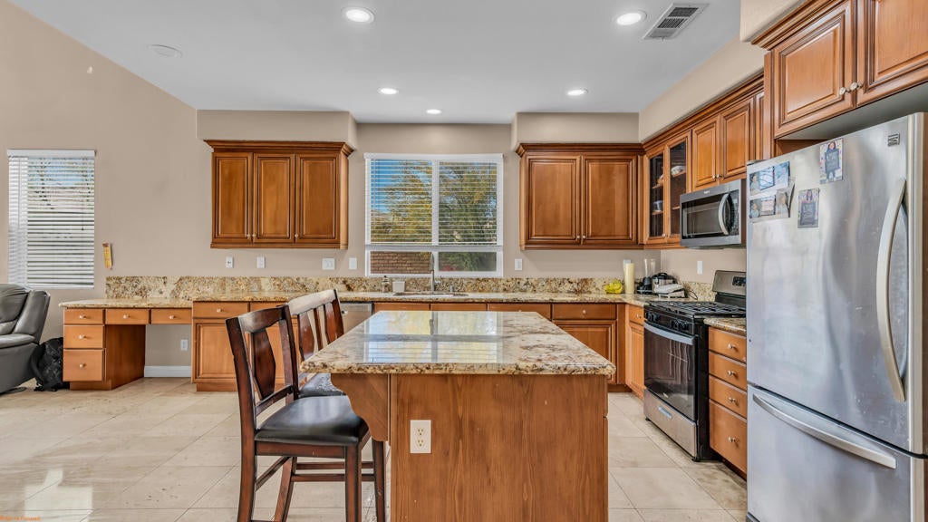 For lease in the beautiful community of Talavera. This spacious two story home offers 5 bedrooms and 3 full bathrooms and is available for immediate move in. All applicants must apply through RentSpree, and the renter is responsible for the application fee. Move in ready home featuring a bright and functional layout perfect for comfortable living. The home offers two living spaces an oversized lot, four spacious bedrooms plus an additional entertainment room that can also be used as a fifth bedroom, office, or flex space. The kitchen is designed for both style and convenience with granite countertops, a large pantry, new stainless-steel appliances, and tile flooring for easy maintenance. The primary bedroom features new carpet and private access to the beautifully manicured backyard. The primary bathroom includes tile flooring, a separate bathtub and walk-in shower, dual sinks, and a private toilet room. Upstairs, the entertainment room showcases elegant wood-style tile flooring, providing the perfect space for a second living area, media room, or game room.Located in the desirable Talavera gated community, this home offers space, comfort, and convenience in a well maintained neighborhood with parks.