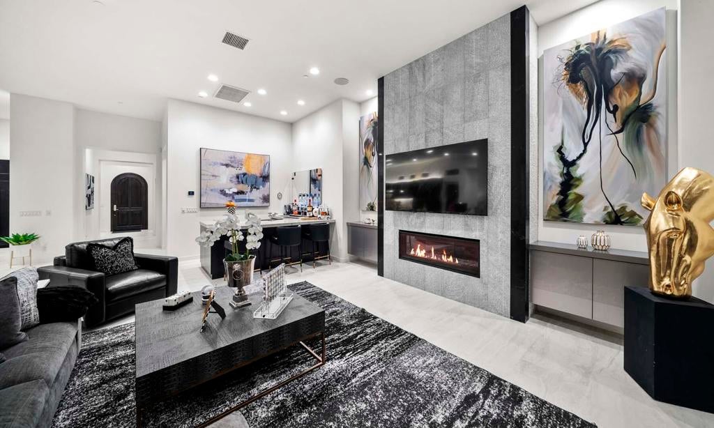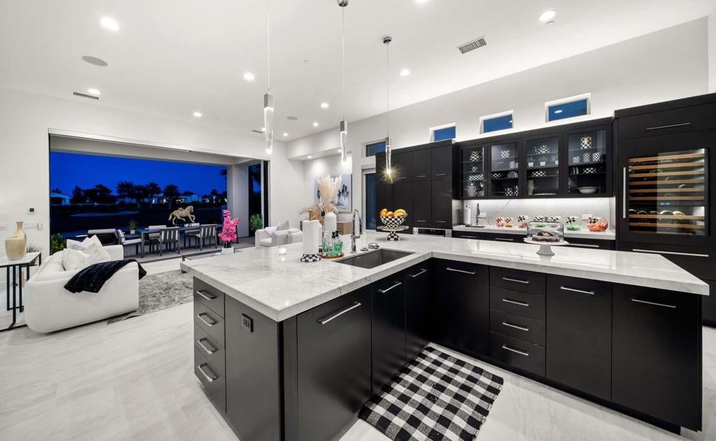 Positioned along the 13th fairway of Toscana Country Club's Jack Nicklaus Signature North Course, this stunning 2022-built residence captures the essence of modern desert luxury with sweeping views of the South mountains from this oversized homesite and the soothing sounds of a nearby creek and waterfall. Offered designer furnished, the home blends sophisticated style with effortless indoor-outdoor living in one of the Club's most desirable locations.Expansive pocketing sliders open the great room to beautifully designed outdoor spaces, creating a seamless flow ideal for entertaining or relaxing under the desert sky. Two inviting firepits provide the perfect setting for evening gatherings while enjoying tranquil golf course and mountain views. The gourmet kitchen is thoughtfully appointed with Wolf and Sub-Zero appliances, sleek cabinetry, and a large center island designed for both functionality and style. A Sub-Zero wine refrigerator adds the perfect touch for effortless entertaining. The home also offers exceptional efficiency and comfort, featuring owned solar with 52 panels and a mini-split air conditioning system in the garage for year-round convenience. Perfectly situated within the prestigious gates of Toscana Country Club, this exceptional residence delivers a refined blend of modern design, premium amenities, and the relaxed elegance that defines luxury desert living.