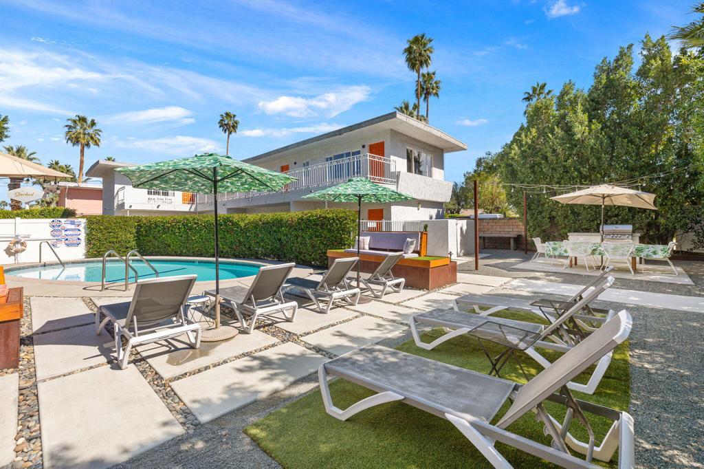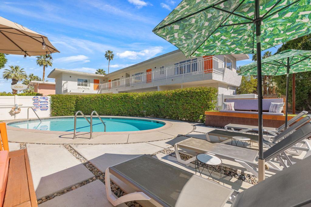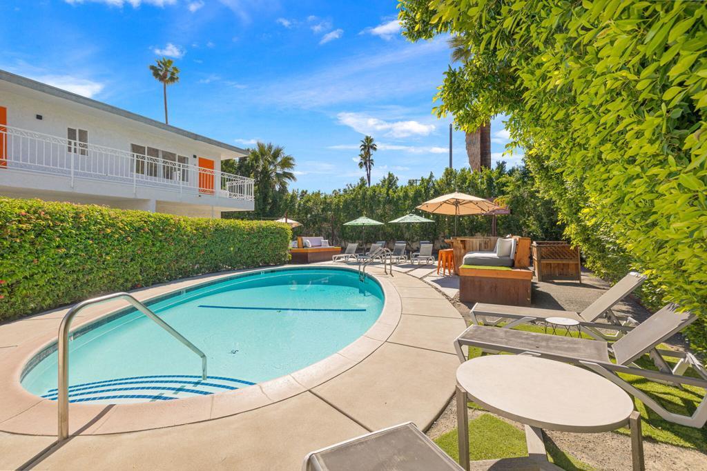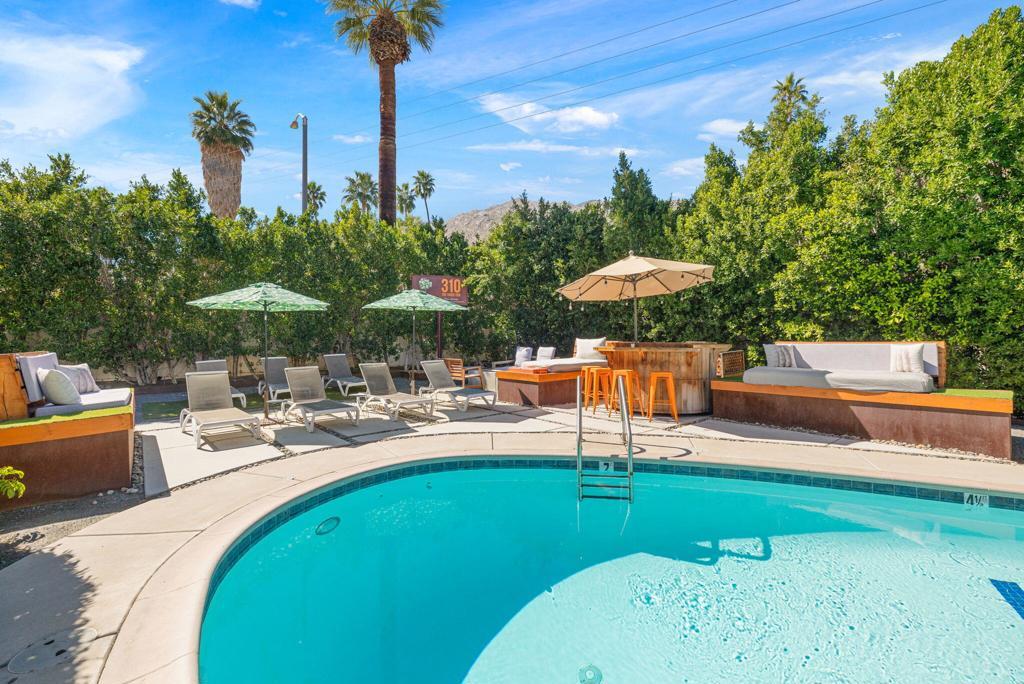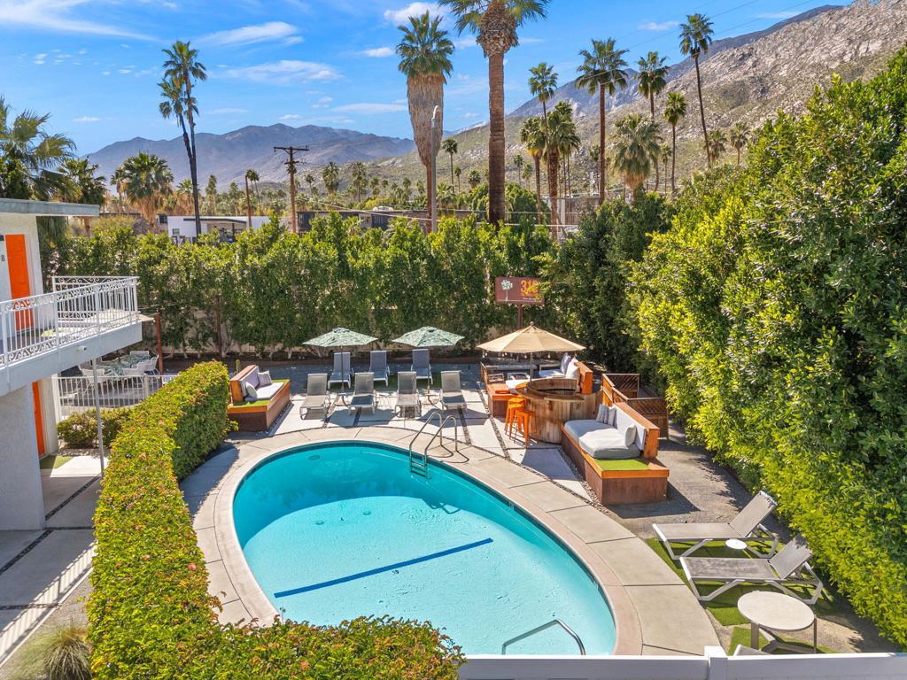 Nestled in the heart of Palm Springs The Three Ten Hotel offers an elevated desert escape where timeless design meets effortless luxury. This beautifully restored Mid-Century boutique property captures the spirit of classic Palm Springs while delivering the comfort, privacy, and style today's discerning travelers expect.Designed for intimate getaways and memorable group experiences, the hotel features seven spacious, vintage-inspired suites thoughtfully arranged around a tranquil central pool courtyard. Each room blends retro charm with modern convenience, featuring luxurious queen beds, curated furnishings, and private kitchenettes. Two larger suites offer full kitchens and separate living areas--perfect for extended stays, entertaining, or relaxing in true Palm Springs fashion.Guests are invited to unwind beneath endless desert skies while enjoying sweeping views of the majestic San Jacinto Mountains.Sun-drenched afternoons by the pool transition seamlessly into breathtaking sunset evenings, where the surrounding desert landscape creates an atmosphere of serenity and understated glamour.Whether you're planning a private celebration, a stylish group retreat, or a festival getaway to nearby events like the world-renowned Coachella Valley Music and Arts Festival or Stagecoach Festival, The Three Ten Hotel offers a boutique experience designed for unforgettable moments.With accommodations for up to 17 guests, the property is ideal for exclusive buyouts, bachelorette weekends, birthdays, and curated desert escapes--where mid-century elegance, mountain views, and Palm Springs sophistication come together in perfect harmony.