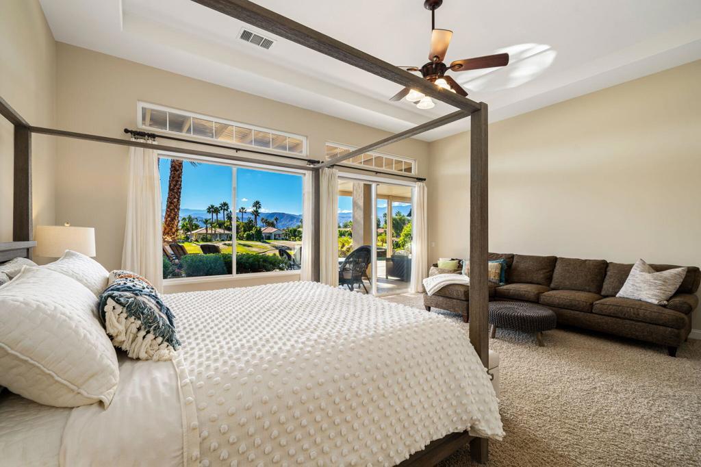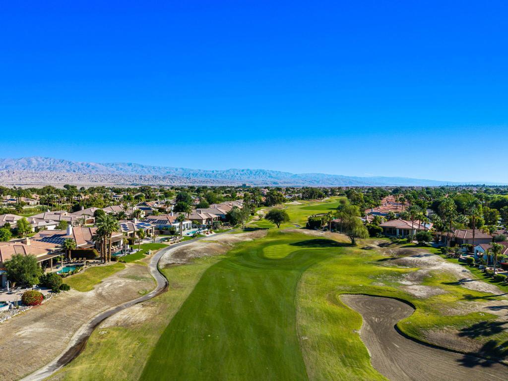 New Listing! Executive Mira Vista Golf Course RetreatLocated on the 16th fairway of the Gary Player Signature Course in Mission Hills, this stunning executive retreat offers sweeping golf course and mountain views along with a private sparkling pool and spa designed for luxury and comfort.Recently remodeled, the home features three en-suite bedrooms, including a detached casita complete with kitchenette and private bathroom. The primary and second bedrooms offer king-size beds, while the third bedroom features a queen bed. A dedicated office or optional fourth bedroom includes its own en-suite bathroom and a queen Murphy bed, providing flexible space for additional guests.Inside, soaring ceilings create a light and bright atmosphere throughout the home. Elegant wood-look tile flooring, a cozy fireplace, and expansive windows showcase the beautiful views.Outdoor living is just as impressive. Relax beneath the large covered lanai featuring a comfortable sofa lounge and dining area overlooking the fairway. The spectacular front courtyard offers another private space perfect for morning coffee or brunch. This home sits on a large private lot within the guard-gated Mira Vista community, surrounded by majestic palm trees.The remodeled kitchen features granite countertops, an island, and a wet bar, making it perfect for entertaining.Golf lovers will appreciate pay-as-you-play access to two nearby public courses, the Gary Player Signature Course and the Pete Dye Course, located just around the corner at the Westin Resort and Spa. Other nearby country clubs offer seasonal memberships.Enjoy a short drive to the famous El Paseo shopping and dining district, vibrant Palm Springs nightlife only 9 miles away, and Agua Caliente Casino just 5 minutes away.Take in majestic mountain and golf course views from the living room, dining area, kitchen, and primary bedroom. You may never want to leave this beautiful home on Via Bella, which means ''beautiful street'' in Spanish.