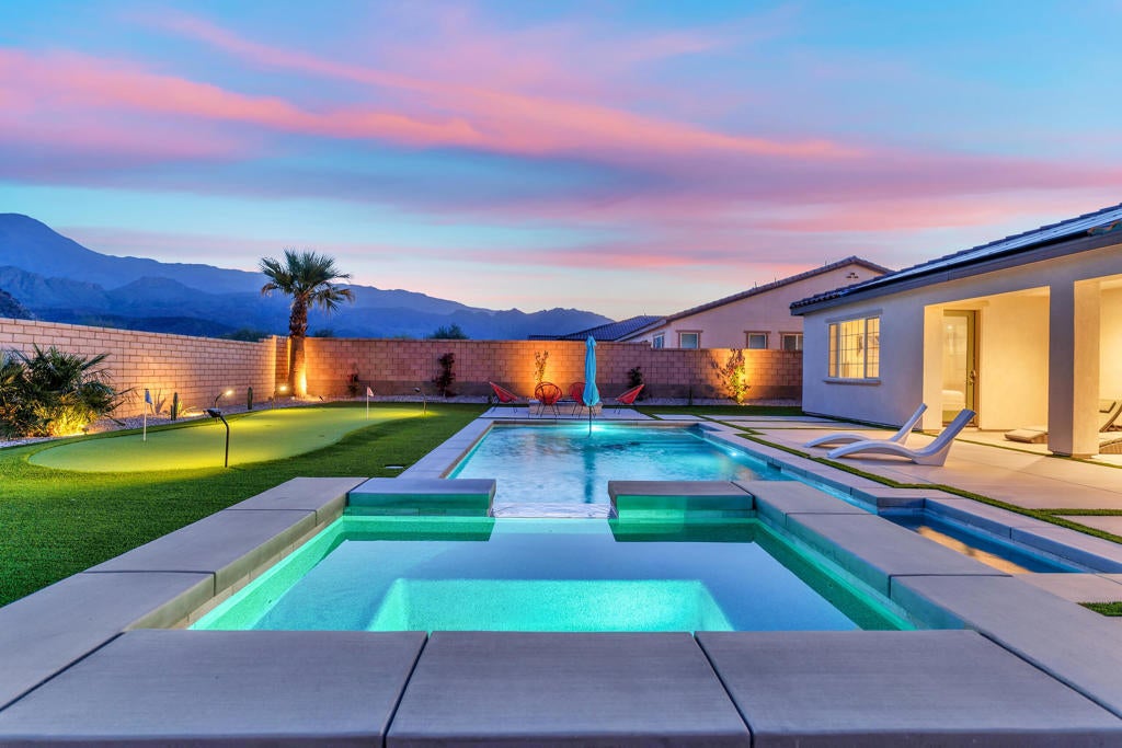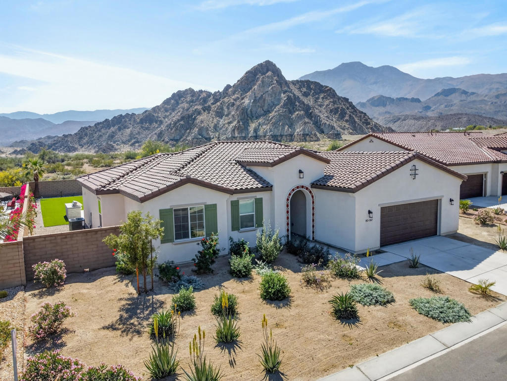Perfectly positioned within the exclusive gated community of Cantera at Coral Mountains, this single-story residence offers a rare opportunity to own a never-lived-in home without the wait of construction. From the moment you arrive, the striking backdrop of south-facing mountain views sets the stage for a lifestyle defined by desert elegance and refined sophistication. Step inside to an expansive, light-filled open concept where soaring ceilings and upgraded flooring create a seamless transition between spaces. The heart of the home is the chef-inspired kitchen, boasting crisp white cabinetry, a generous walk-in pantry, and a massive center island that overlooks the great room--an ideal layout for hosting intimate dinners or large-scale gatherings. With four spacious bedrooms, including a private primary retreat that offers direct access to the backyard, the floor plan is as functional as it is beautiful. The interior luxury is matched only by the newly completed outdoor oasis. Designed for the ultimate entertainer, the oversized lot features a sparkling Pebble Tec pool and raised spa, all managed by a smart pool system for effortless control. Whether you are practicing your short game on the custom putting green, gathering around the gas firepit, or preparing a meal at the plumbed BBQ station, the panoramic mountain vistas provide a constant, breathtaking reminder of your premier South La Quinta location. Complete with an attached 3-car tandem garage, energy-efficient solar panels, and the benefit of low HOA dues, this property is more than just a home--it is a private resort. Located just minutes from the world-class fairways of PGA West and the boutique charm of Old Town La Quinta, 80367 Segovia View Way is ready for its very first chapter.