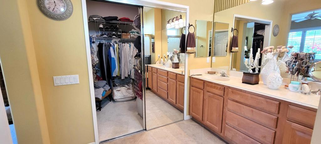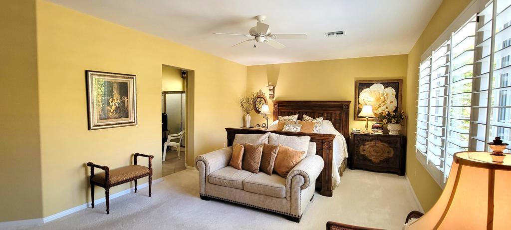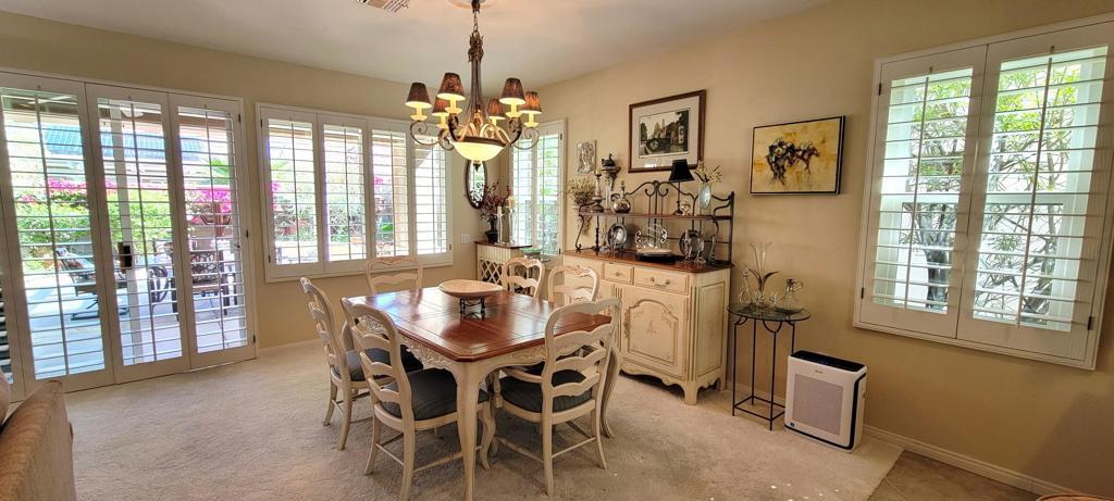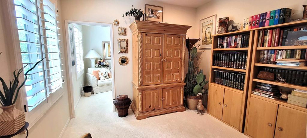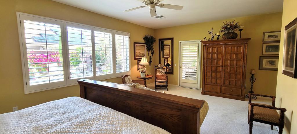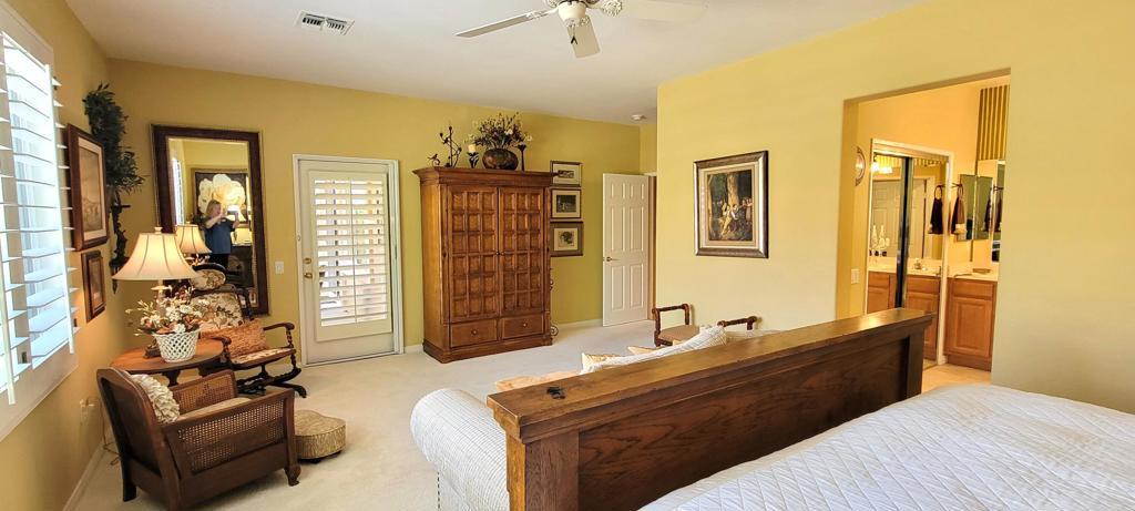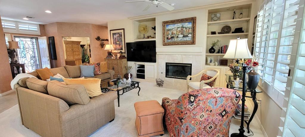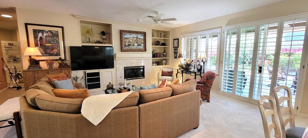 Welcome to resort style living in Sun City, Palm Desert. This 2 bedroom/2 bathroom + an additional room to be used as a bedroom/office/den/sewing or crafting area. Beautifully appointed throughout and lovingly cared for. You'll love the high ceilings, open floorplan and lushly landscaped backyard with several seating areas for your enjoyment, 2 car garage + golf cart garage, plantation shutters throughout and a fireplace for cozy evenings. When you feel like getting out and about, Sun City offers something for everyone. Residents have thirty-six holes on two magnificently maintained regulation championship golf courses located on property. These spectacular courses, designed by former PGA star Billy Casper, provide resort-style golf play and host several tournaments each year. Additionally, there are 80+ clubs and social groups and a large selection of recreational, athletic, educational, entertainment and social activities for you to enjoy and get to know your neighbors along with 3 clubhouses, 3 restaurants and even their own postal center! There are also educational opportunities and entertainment from plays and musicals to star-studded shows, concerts and guest speakers. Along with golf, there are 2 fitness facilities and 5 swimming pools, 20 paddle courts, 8 bocce courts, Zumba, Pilates, softball field, stocked fishing lake (catch and release), driving range, chipping and putting practice areas, bike and jogging paths and for your furry family members - 2 fenced dog parks. Sun City is recognized as the best active adult community in the valley. Come by, see this gorgeous home and check out the beauty that is Sun City, Palm Desert.