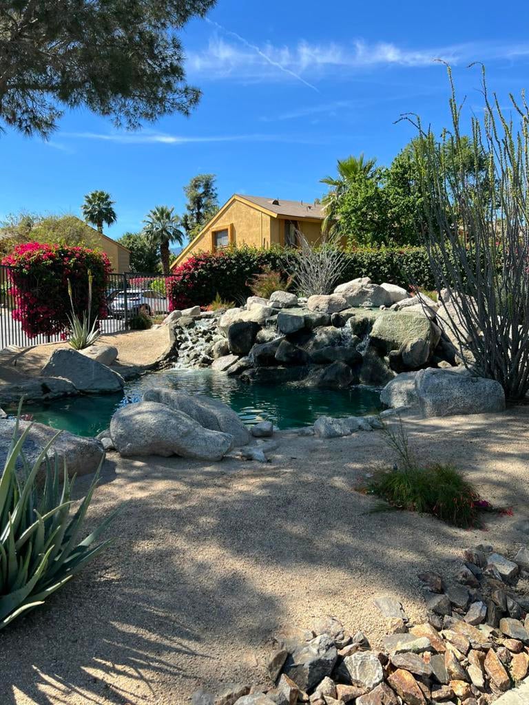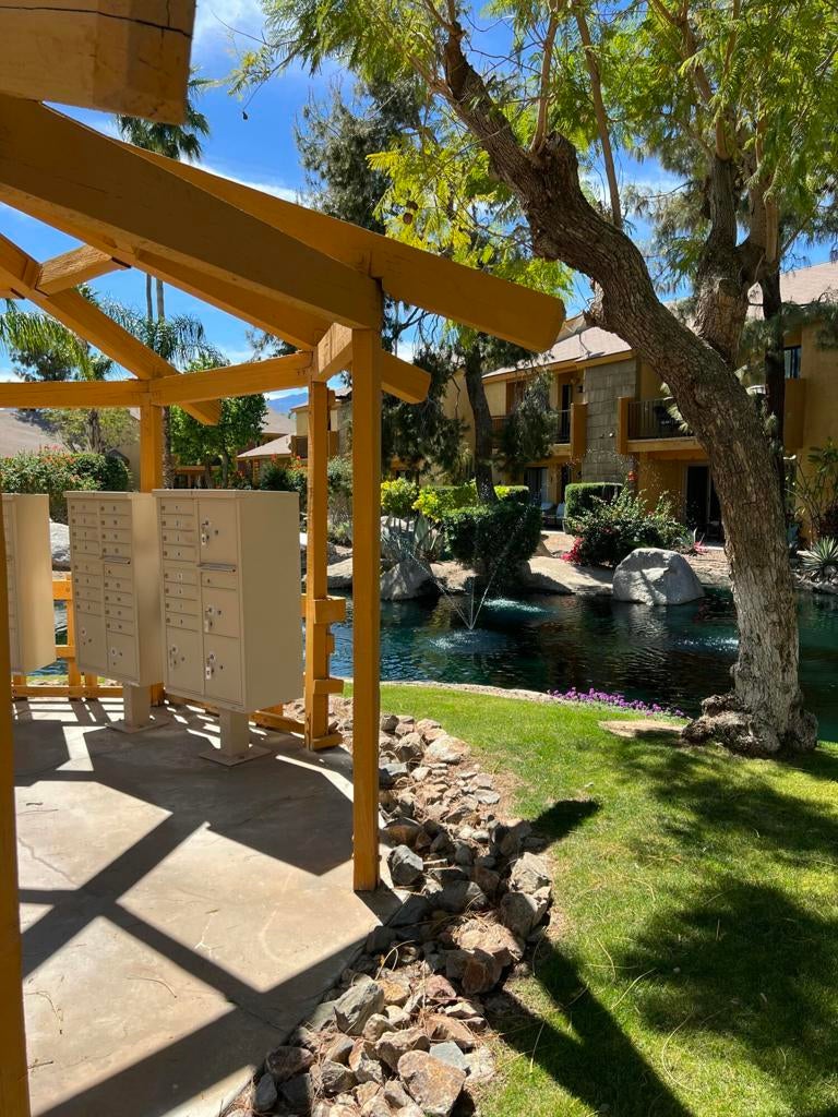Turnkey, end unit loft condo, with views of the waterway, tennis courts and common area gazebo. Inside the complex you will discover well maintained landscaping. The unit comes with a smart security system and a single car detached garage. This is a prime location, just blocks from the Polo/Festival grounds, close to shopping and multiple golf courses. The loft layout is great for renters and is amazing for STRs (with HOA approval and a license). Quail Lakes is a gated community with a club house, pool, hot tub & tennis courts. The back patio looks out onto the ''lazy river'' and has it's own private laundry area(in the patio closet). Kitchen, dining area, desk space, living room and remodeled half bath are on the first level. Main bedroom/loft, partially remodeled main bath with 2 closets are on the second level. There is LVP flooring downstairs and carpet upstairs. This would make a great desert getaway or investment property - This complex is an FHA Approved Complex.. Call today to schedule an appointment to see this home.
