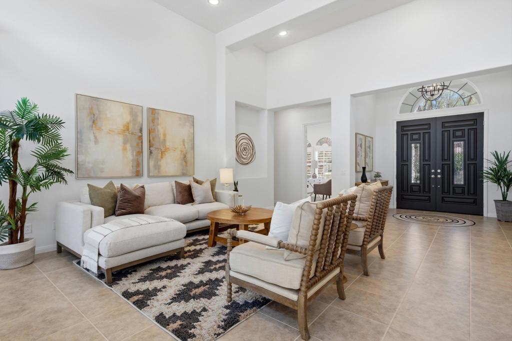 Welcome to Desert River Estates, a highly desirable gated community in Indio known for its spacious estate homes and quiet residential setting in the heart of the beautiful Coachella Valley. Ideally located near shopping, dining, golf, and entertainment, this exceptional property offers the perfect blend of luxury desert living and convenience.This 4-bedroom, 3.5-bath pool home with a private office/den offers an expansive floor plan designed for both comfortable living and entertaining. The home has been freshly updated with new interior and exterior paint, new carpet, updated lighting, ceiling fans, and brand-new KitchenAid appliances, making it completely move-in ready.Inside, you'll find massive living spaces including a formal living room, dining room, and a spacious open-concept family room and kitchen, ideal for gatherings and everyday living. Thoughtful design provides excellent bedroom separation, with the primary suite privately located away from the secondary bedrooms.Situated on a quiet interior corner lot, the backyard is a true resort-style retreat. Enjoy a sparkling pool with waterfall and spa fountain features, a large grass area, and a cozy fire pit seating area perfect for relaxing evenings. Outdoor entertaining is effortless with a new built-in BBQ, outdoor refrigerator, large rear awning, and misting system designed for year-round comfort.Additional highlights include a three-car garage, separate laundry room, generous interior living spaces, and beautifully landscaped outdoor areas.Located just minutes from the restaurants and shopping of La Quinta, and close to world-renowned events such as the Coachella Valley Music and Arts Festival and Stagecoach Festival, this home is perfectly positioned to enjoy everything the desert lifestyle has to offer.If you're searching for a luxury pool home in a gated community in Indio near La Quinta--with expansive indoor-outdoor living and exceptional entertaining space--this Desert River Estates property is a must see.