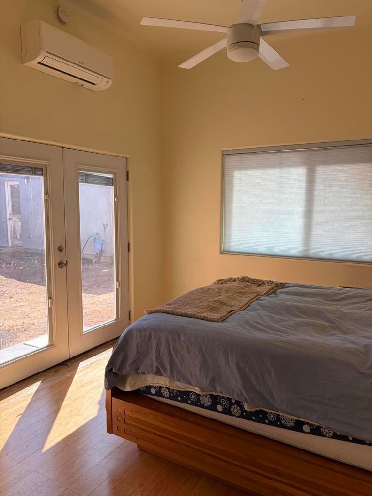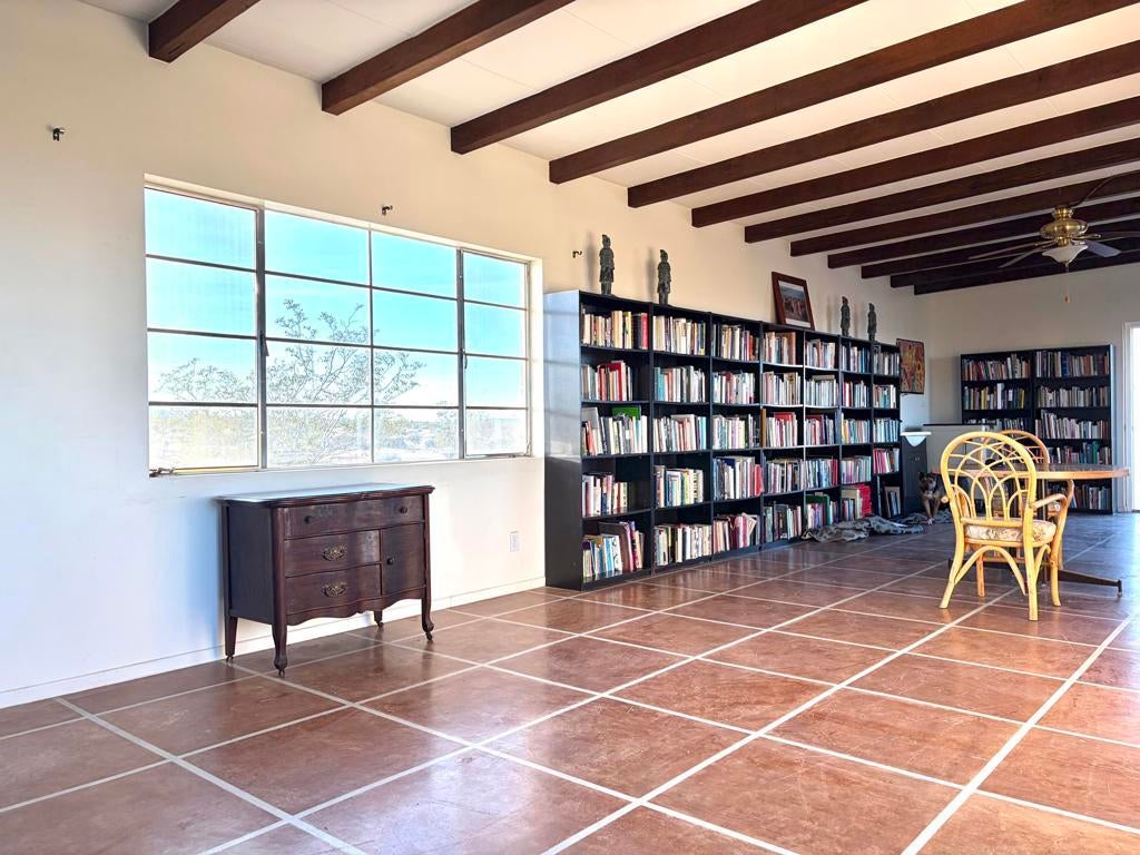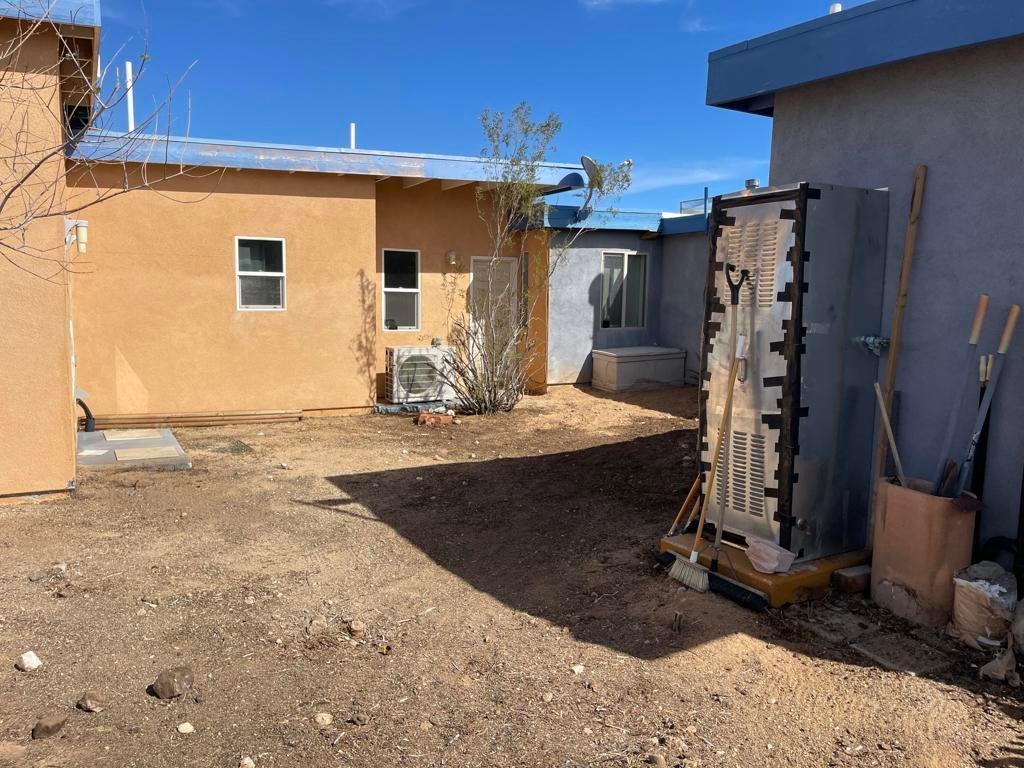 Excellent opportunity in N Joshua Tree! This 2 bed/2 bath 1956 house with detached studio enjoys 7.27 acres, providing plenty of wide open space with big skies and panoramic views of distant mountains. It's a diamond in the rough ready to be polished. The house is laid out nicely with an open living area/kitchen that includes a cozy fireplace. The master bedroom wraps around a fenced-in garden area complete with spa and provides it's own private access. The house has a seller owned, roof mounted 4.0kW solar electric system. The property includes a detached 640 sq ft studio done in mid century block construction with shed roof and charming exposed beams on ceiling. Studio is heated by a propane wood stove and includes an outdoor shower. There is a large tuff shed for extra storage. The lot backs up to BLM land. Just a few minutes from down town Joshua Tree and Landers. Don't miss out on this high desert property with huge potential! Call today.