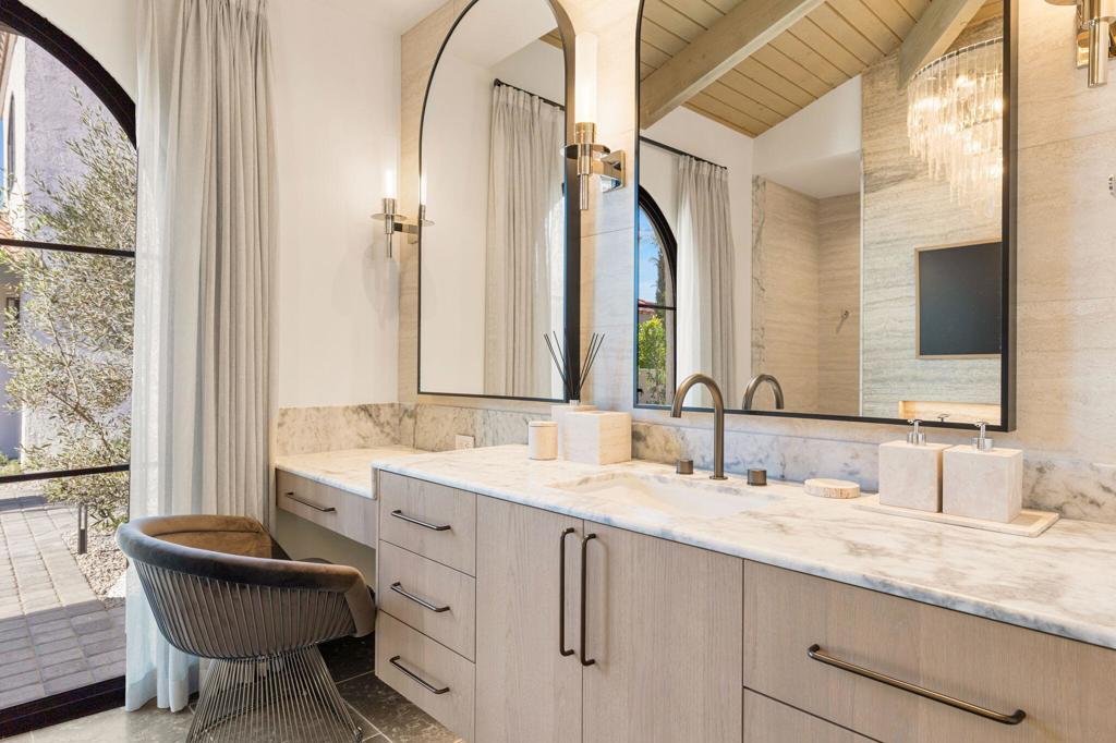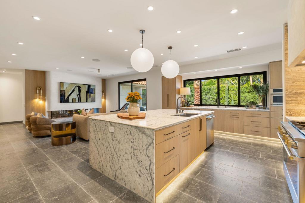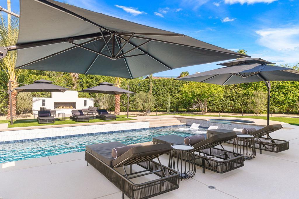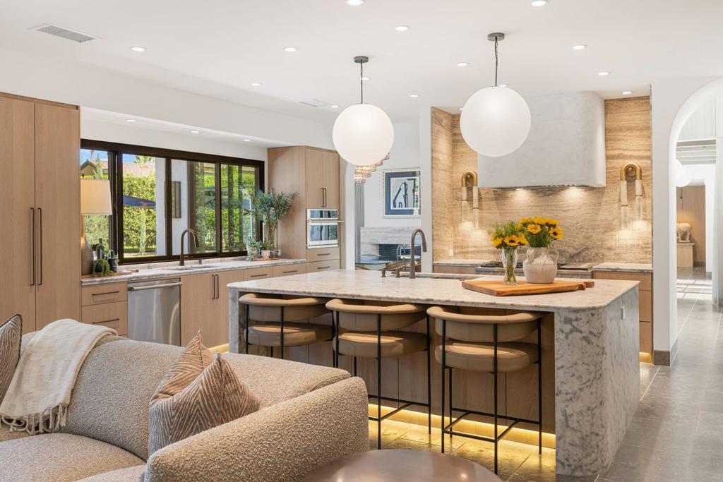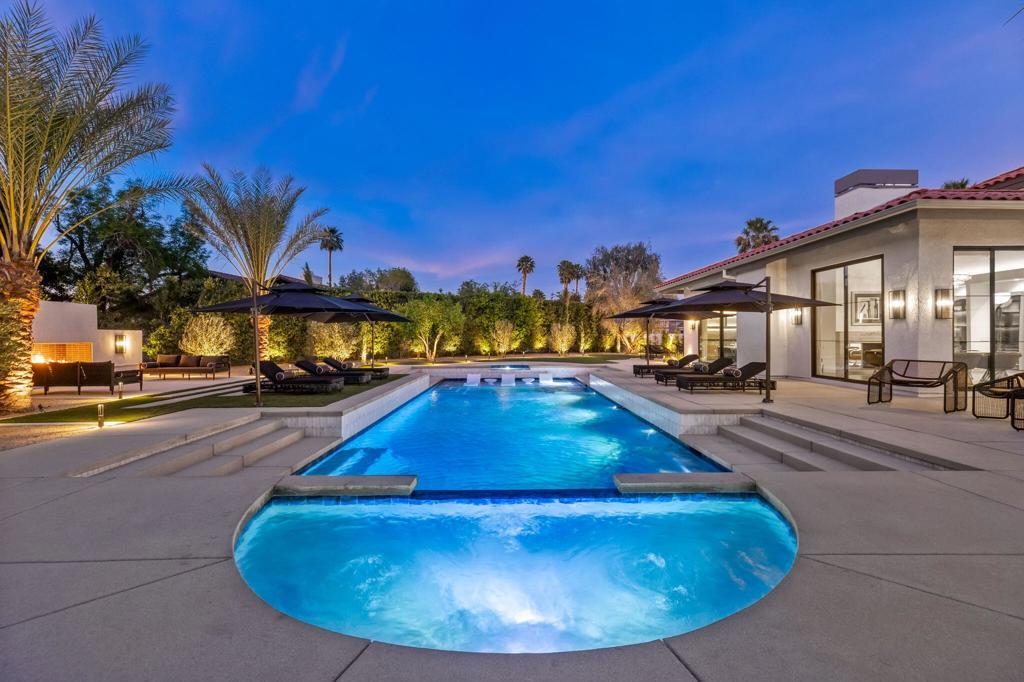 ***OPEN HOUSE FRIDAY APRIL 17TH 12-3PM - SAT APRIL 18TH 11AM-3PM & SUN APRIL 19TH 12-3PM*** Welcome to 3 Clancy Lane S, a fully custom Mediterranean-modern estate in the heart of Rancho Mirage. Offered fully furnished, this 4-bedroom, 6-bathroom residence plus private office presents a rare turnkey opportunity. Thoughtfully redesigned from top to bottom, the home blends timeless architecture with refined modern finishes, highlighted by extensive custom stonework, white oak bespoke cabinetry, and statement designer lighting throughout. Soaring ceilings, exposed beams, expansive walls of glass, and limestone floors create a sense of scale while maintaining warmth and cohesion. The floor plan balances elegance and comfort, featuring formal living and dining spaces, relaxed lounge areas, and a striking chef's kitchen anchored by a dramatic stone island, slab backsplash, custom cabinetry, and premium appliances. The primary suite is a private retreat with a fireplace, statement lighting, and dual spa-style bathrooms, while each guest bedroom offers its own beautifully appointed ensuite. Outside, the grounds unfold like a private resort--complete with a stunning pool and spa, Baja shelf loungers, expansive patios, and secluded lounge areas framed by mature landscaping. Fully custom, fully furnished, and truly turnkey, 3 Clancy Lane S is a rare estate offering in one of Rancho Mirage's most coveted locations. Call the listing agent for your private showing today!