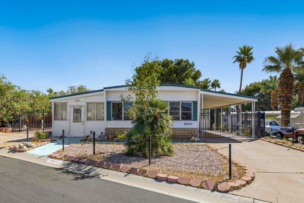 Welcome to 69371 Parkside Drive, a great opportunity to enjoy relaxed desert living in the active 55+ golf community of Desert Crest Country Club. This charming manufactured home offers comfortable living in a peaceful setting surrounded by beautiful desert and mountain views. Inside, the home offers a comfortable living and dining area with a practical layout designed for easy everyday living. Large windows bring in plenty of natural light, creating a warm and inviting atmosphere throughout the home. Step outside and enjoy the private outdoor areas--perfect for morning coffee, relaxing in the shade, or entertaining friends while taking in the quiet desert surroundings. The property also offers covered parking and additional outdoor space that provides flexibility for storage, hobbies, or simply enjoying the outdoors. Residents of Desert Crest Country Club enjoy an active and friendly lifestyle with amenities that include a 9-hole par-3 golf course, natural hot mineral water pool and spa, clubhouse, fitness area, shuffleboard courts, and a full calendar of social activities. One of the biggest benefits of this community is that you own the land with no space rent, all while enjoying a low monthly HOA. Conveniently located just a short drive from Palm Springs, this home offers easy access to shopping, dining, entertainment, and everything the Coachella Valley has to offer while still maintaining the quiet charm of the Sky Valley area. Whether you're looking for a full-time residence, seasonal retreat, or an affordable desert getaway, this home is a wonderful opportunity to enjoy the relaxed lifestyle and community atmosphere that Desert Crest is known for.