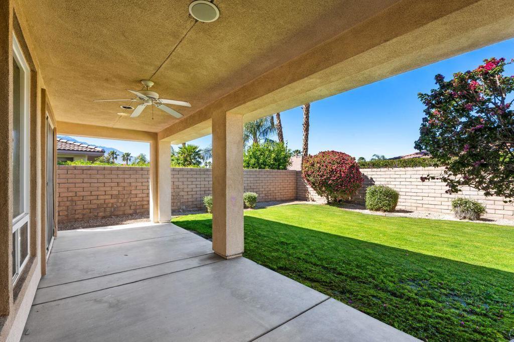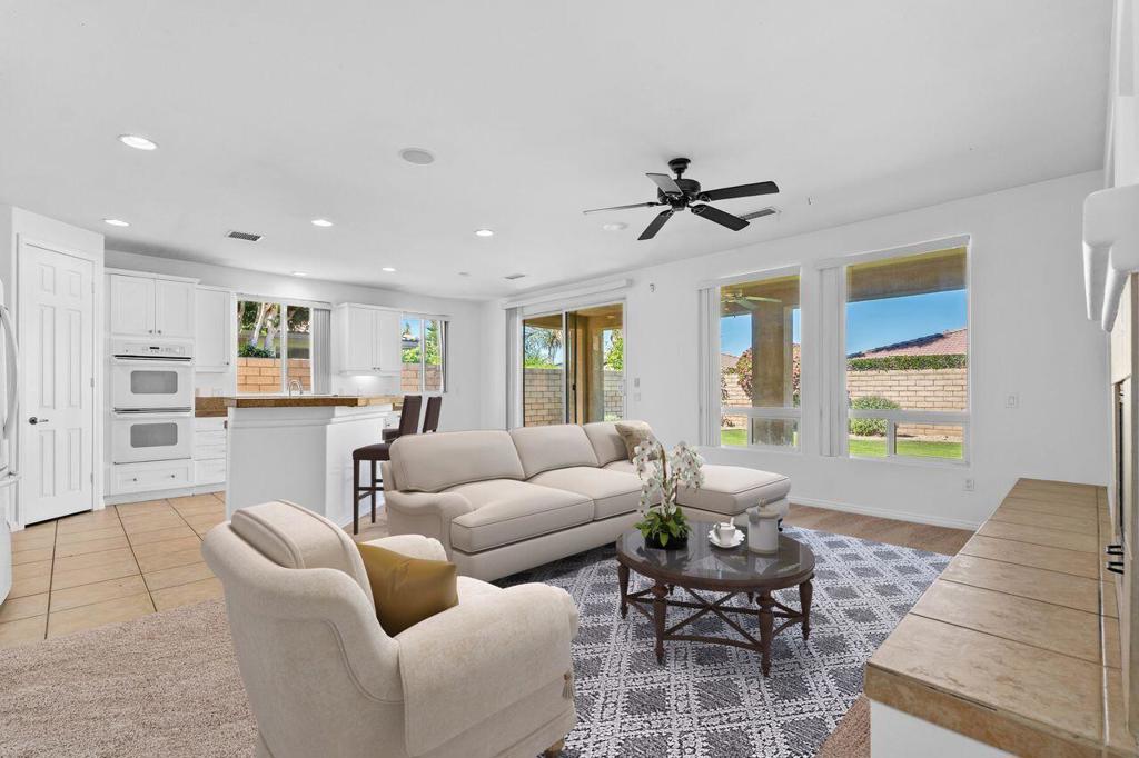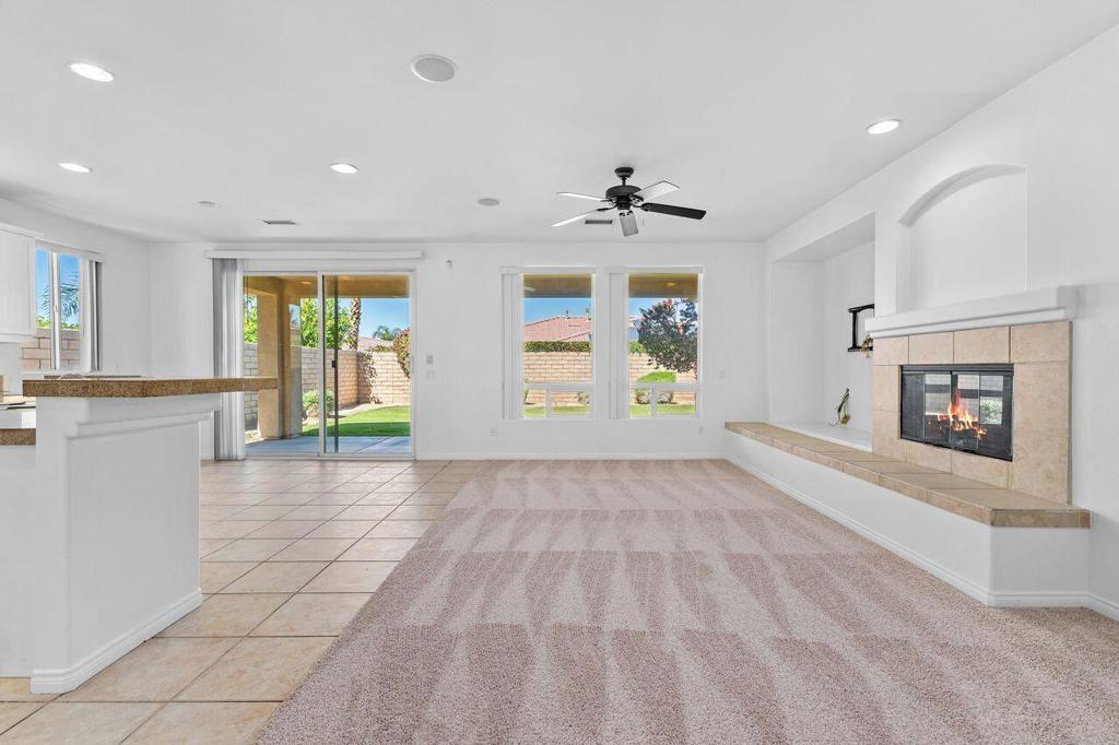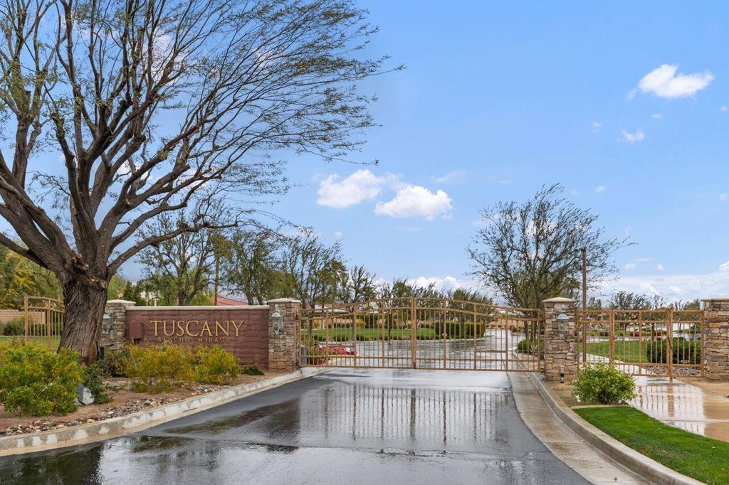 Located in the upscale gated community of Tuscany in Rancho Mirage, this meticulously maintained 4-bedroom, 3-bathroom residence offers 2,407 square feet of open desert living. Freshly updated with brand-new carpet and professional interior paint, the home features a light-filled floor plan highlighted by a family room with a cozy fireplace and built-in media niche, as well as versatile formal living and dining areas. The kitchen is a chef's dream with upgraded white cabinetry, granite tile countertops, and a functional center island with a dedicated vegetable sink. Retreat to the oversized primary suite, which offers a massive walk-in closet and a private entrance leading directly to the mature backyard. The layout includes Jack and Jill guest bedrooms and an oversized 2-car garage. The backyard is a private sanctuary with an expansive covered patio designed for effortless relaxation and entertaining. Residents of Tuscany enjoy exclusive resort-style amenities, including a sparkling community pool, spa, playground, and a fenced dog park. Ideally situated near the I-10, this home puts you minutes away from world-class golf, fine dining at The River, and premier entertainment at Agua Caliente Casino Resort Spa, offering the ultimate desert lifestyle.