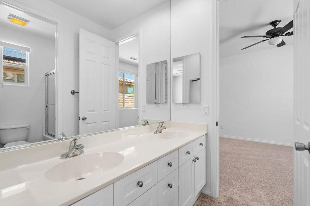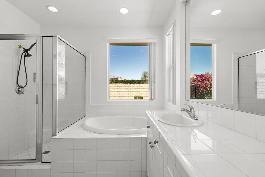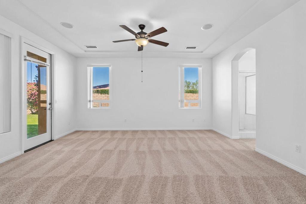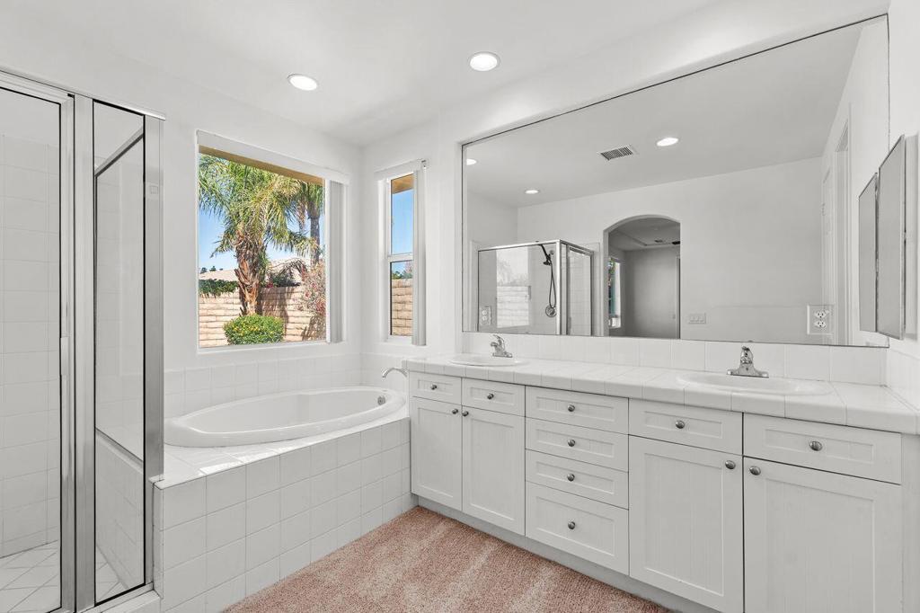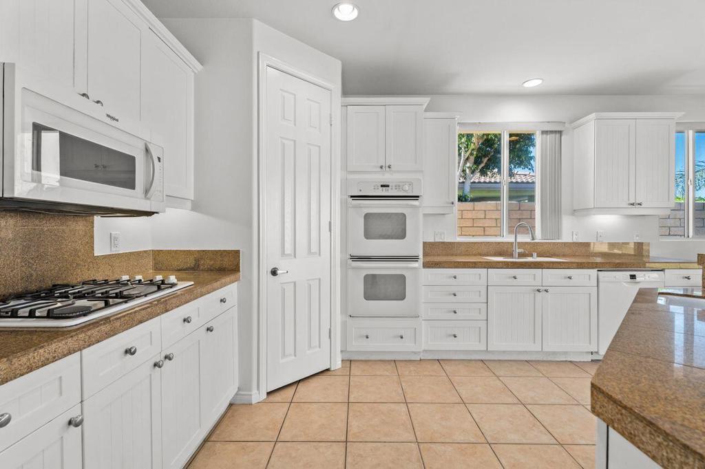 Located in the upscale gated community of Tuscany in Rancho Mirage, this meticulously maintained 4-bedroom, 3-bathroom residence offers 2,407 square feet of open desert living. Freshly updated with brand-new carpet and professional interior paint, the home features a light-filled floor plan highlighted by a family room with a cozy fireplace and built-in media niche, as well as versatile formal living and dining areas. The kitchen is a chef's dream with upgraded white cabinetry, granite tile countertops, and a functional center island with a dedicated vegetable sink. Retreat to the oversized primary suite, which offers a massive walk-in closet and a private entrance leading directly to the mature backyard. The layout includes Jack and Jill guest bedrooms and an oversized 2-car garage. The backyard is a private sanctuary with an expansive covered patio designed for effortless relaxation and entertaining. Residents of Tuscany enjoy exclusive resort-style amenities, including a sparkling community pool, spa, playground, and a fenced dog park. Ideally situated near the I-10, this home puts you minutes away from world-class golf, fine dining at The River, and premier entertainment at Agua Caliente Casino Resort Spa, offering the ultimate desert lifestyle.