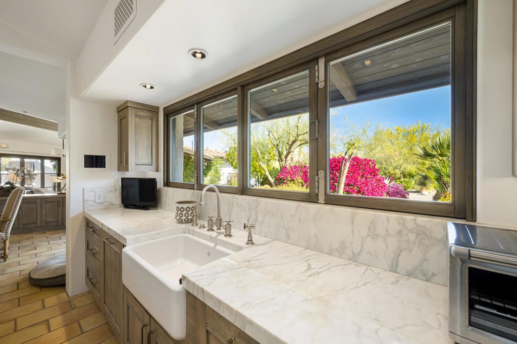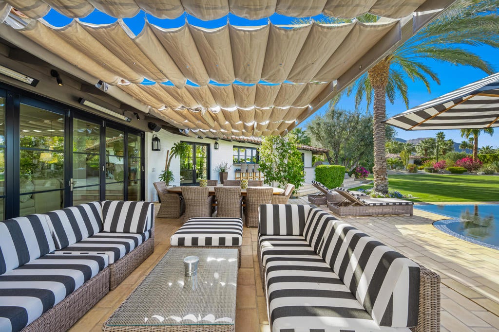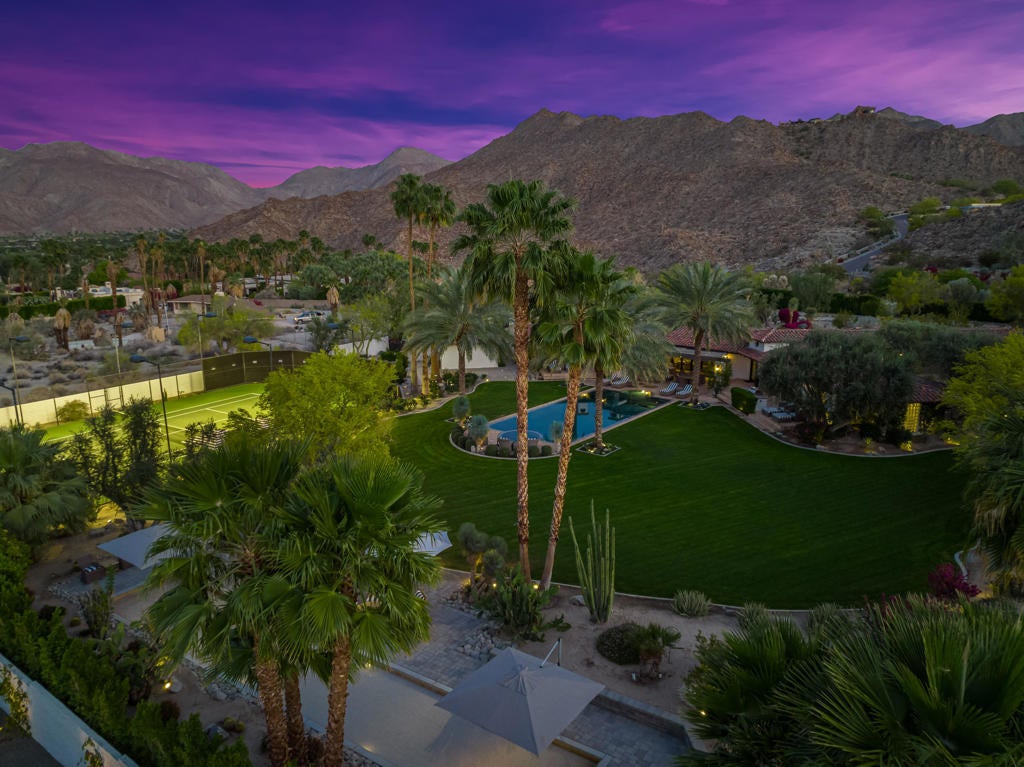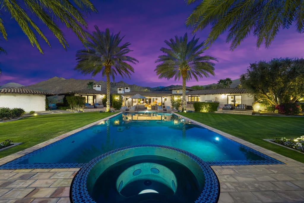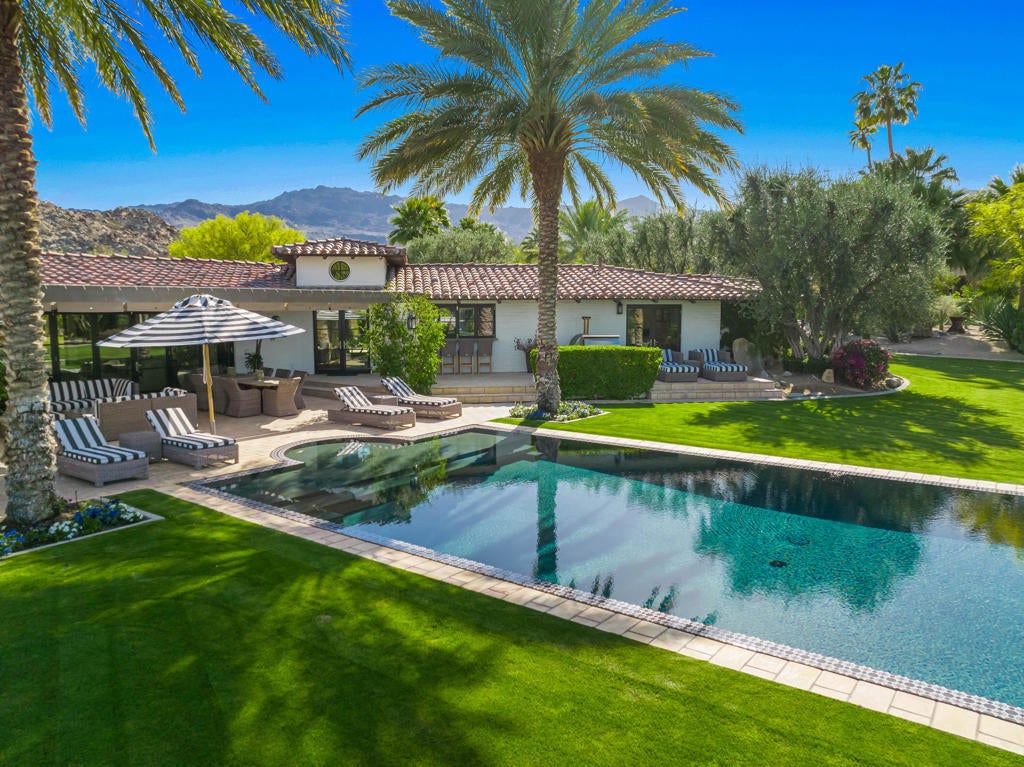 Nestled within the exclusive enclave of Ironwood Country Club, this down to the studs renovated and fully furnished estate offers a rare opportunity to own a piece of history. Once the esteemed Bing Crosby estate, this remarkable property spans an expansive 2.53 acres, boasting unparalleled privacy and mature landscaping.This elegant residence presents 5 bedrooms and 7 bathrooms throughout the main house and includes 3 casitas, providing ample space for luxurious living and entertaining. The interior exudes timeless sophistication, with meticulous attention to detail evident throughout. A seamless blend of modern amenities and classic charm creates an inviting ambiance in every corner. For entertaining, the home includes an electronic Lutron Lighting. system, an ice maker and beer keg in the bar, and a warming drawer and a Miele Expresso machine in the kitchen. The property also includes whole house water filtration.Outdoor indulgence awaits on the grounds, featuring a lighted tennis court and bocce ball court, offering endless opportunities for recreation and leisure. The estate is also equipped with solar panels, ensuring energy efficiency without compromising on luxury.With its rich history and unparalleled privacy, this property offers a rare chance to experience the epitome of desert living. Whether hosting grand events or enjoying serene moments of solitude, this estate embodies the essence of refined living in one of California's most coveted locations. Live the legacy of Bing Crosby in this extraordinary retreat.