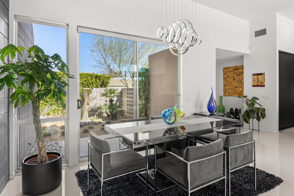 Welcome to 1069 Azure Court, a beautifully reimagined modern residence in Palm Springs' highly sought after Murano neighborhood, a boutique enclave known for its architectural integrity, pride of ownership on fee land with no HOA. Recently transformed with nearly $375,000 in sleek, sexy yet thoughtful upgrades, this home reflects an exceptional level of craftsmanship and design rarely found at this price point.The heart of the home is a completely rebuilt chef's kitchen, taken down to the studs and professionally designed with custom European cabinetry, imported Spanish sintered stone countertops, and a full suite of top-of-the-line Gaggenau appliances, creating a space that is as functional as it is stunning. The primary suite has been fully reimagined as a spa-like retreat, featuring a luxurious new bathroom with dual vanities, large, curbless steam shower, freestanding soaking tub, and a beautifully designed custom walk-in closet with integrated lighting and premium built-ins. Every detail was carefully considered to deliver both elegance and everyday comfort.Outdoors, the property continues to impress with a complete landscaping overhaul, creating a private resort-style setting designed for effortless desert living. Generous outdoor areas, a sparkling salt water pool and spa, and stunning mountain views make the home ideal for entertaining or simply enjoying the Palm Springs lifestyle. Set on an expansive 12,600 ft. lot, the property offers significantly more land and outdoor space than many homes in this price range, a rare advantage within the Murano community.With approximately 2,186 ft. , 3 bedrooms, and 3 baths, soaring ceilings, clerestory windows, and seamless indoor-outdoor flow, the home lives larger than its footprint and captures the essence of modern desert living. A rare opportunity to own a fully upgraded architectural home with exceptional space, design, and value in one of Palm Springs' most desirable modern communities.Turnkey furnished option available outside escrow (approx. $100K value offered for $35K).