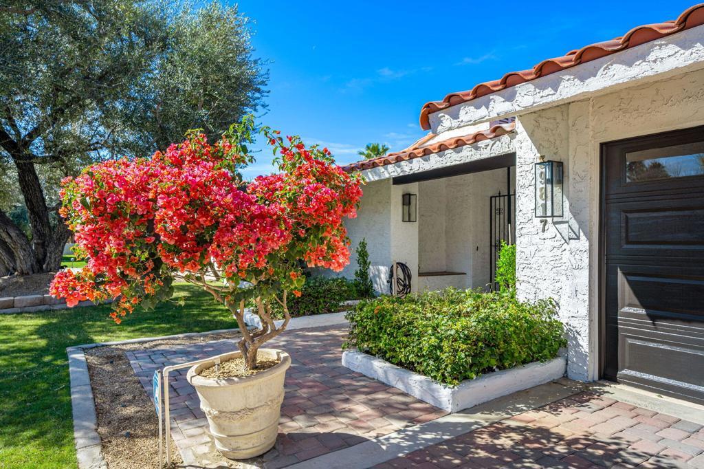 Welcome to this beautifully updated Rancho Mirage home that blends Hacienda charm with modern design, creating a warm and inviting desert retreat with exceptional privacy and character. Located in one of the quietest and most coveted neighborhoods in Rancho Mirage, the home enjoys a sheltered location out of the wind while remaining just minutes from shopping, dining, and Eisenhower Medical Center.Extensively improved over the past few years, the property offers major system upgrades including a new roof (2024), two new HVAC systems and water heaters (2024), and all new sliders and windows installed in 2025, enhancing comfort, efficiency, and natural light throughout the home. Additional improvements include new interior and exterior paint and a new hot tub heater installed in 2026.The outdoor living experience has been thoughtfully redesigned with a new PebbleTec pool renovation completed in 2024 with tanning ledge, creating a private resort-style environment perfect for relaxing or entertaining. Inside, the home features an inviting indoor-outdoor flow that captures the essence of desert living.The interiors blend Hacienda warmth with refined contemporary finishes, creating a sophisticated aesthetic that feels both luxurious and uniquely distinctive. All three bathrooms have been extensively renovated with spa-inspired finishes, creating spaces designed for relaxation. The kitchen has been reimagined with new countertops, providing a stylish and functional space for cooking and gathering.With major upgrades already completed and a non-HOA location offering both tranquility and convenience, this beautifully renovated home thoughtfully preserves its original character while incorporating modern updates. Ideally positioned between two golf courses, residents enjoy the rare opportunity to access and play either, all in the heart of Rancho Mirage.