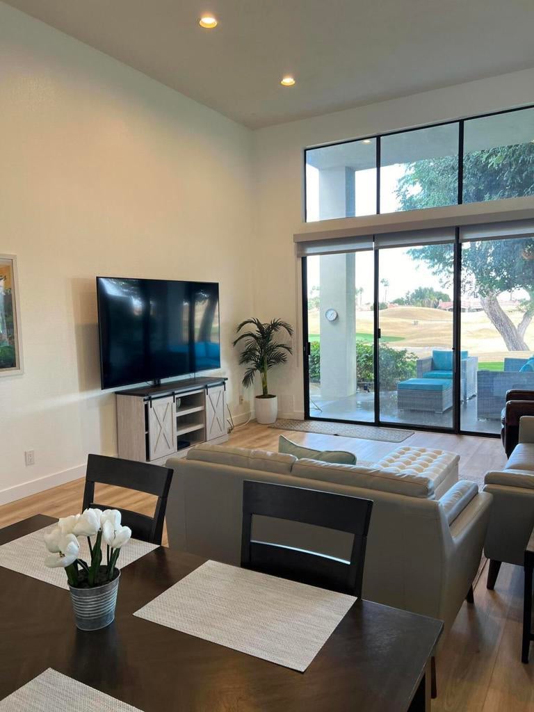 Beautifully remodeled 2-bedroom, 2-bath condo offering 1,330 sq. ft. of comfortable living in a highly desirable gated community. This turnkey furnished home features a recently updated interior with stylish wood-like plank flooring, fresh paint, and a modernized kitchen complete with quartz countertops, new cabinetry, and updated appliances.Enjoy stunning golf course views overlooking the 12th hole of the Stadium Course, along with picturesque mountain views from the private patio--perfect for relaxing or entertaining. The open layout provides a bright and inviting atmosphere, ideal for both full-time living and seasonal enjoyment.Conveniently located just steps from the community pool and spa, this property offers resort-style living in one of the desert's most sought-after communities. Situated within the home of the American Express Tournament, this gated community provides the ultimate desert lifestyle for golf enthusiasts and vacation homeowners alike.