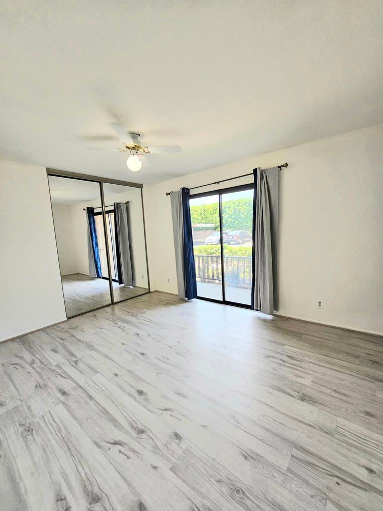 Freshly Remodeled & Spacious 2/2 ground floor unit home features a full-sized walk in laundry room with Washer & Dryer included. Dual patios with Western views. Very Large Bedrooms with an Enormous walk-in closet in Primary Bedroom. both with access to outdoor patios. New flooring and paint to be completed prior to move in! Cathedral Springs is a gated community conveniently located within 10 minutes of downtown Palm Springs with gym and multiple pools and spas. Water, sewer & garbage paid by owner. 1 Year minimum Lease - Sorry, No Pets.