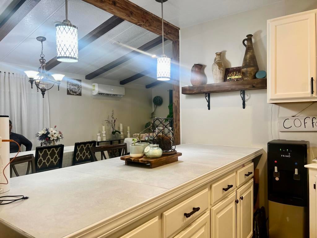 Absolutely gorgeous corner home! Tastefully remodeled kitchen and baths only a couple of years ago, currently with 3 bedrooms, 2 bathrooms, tile flooring, individual laundry room, patios on both sides, enclosed courtyard area, parking space for 6 cars. Community has spa, pool and a large salon for your family parties. Only a few mins from downtown DHS and the Fwy I 10.Agent Remarks: In 2019 kitchen and baths were remodeled, in 2025 new garbage disposal.