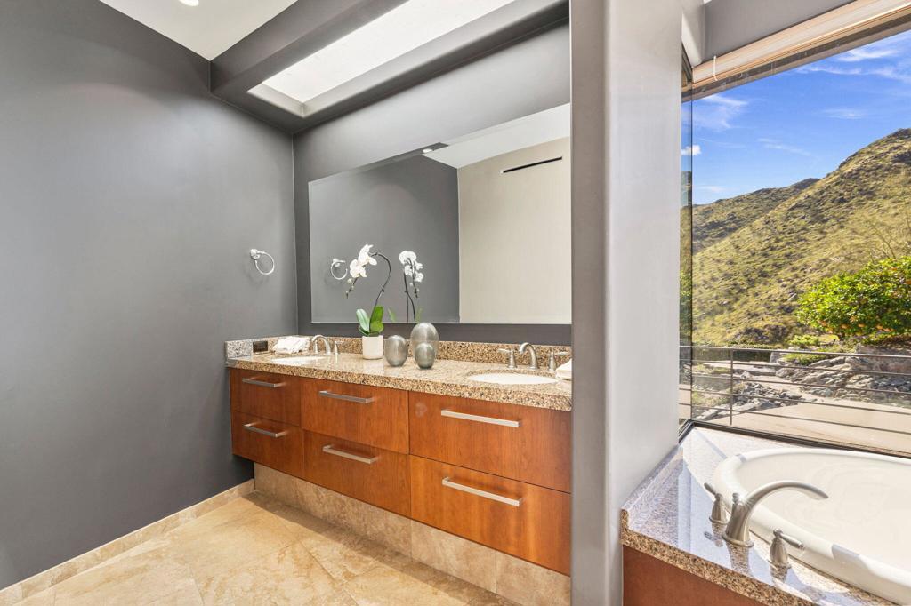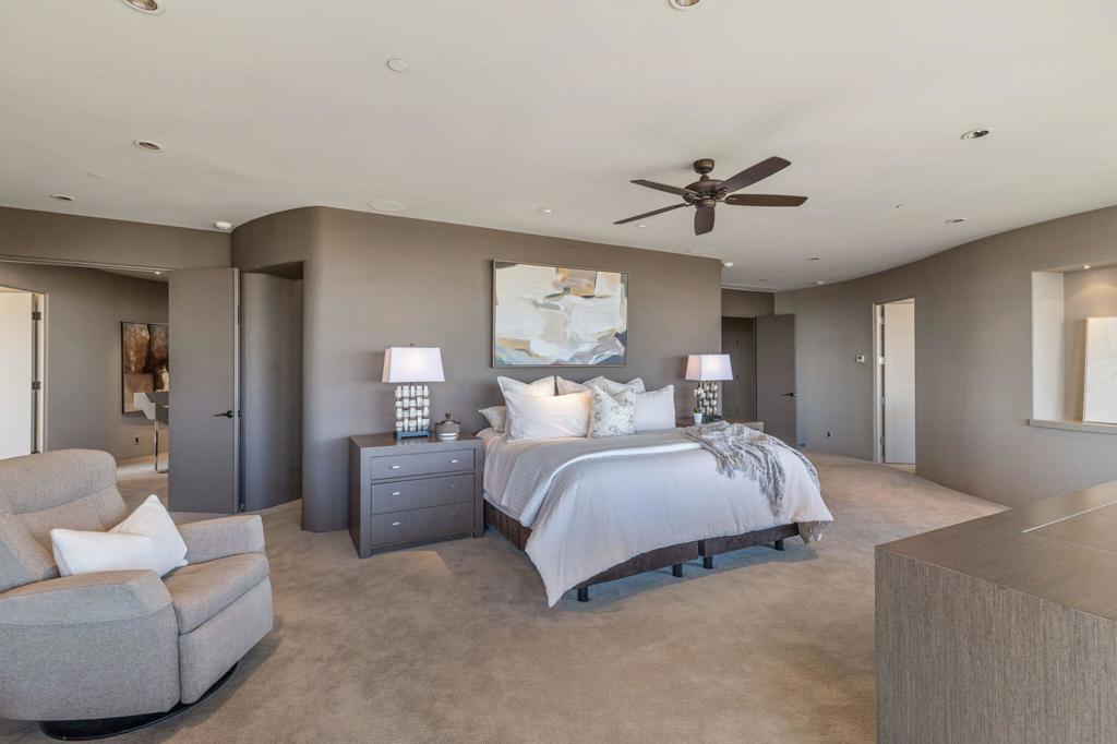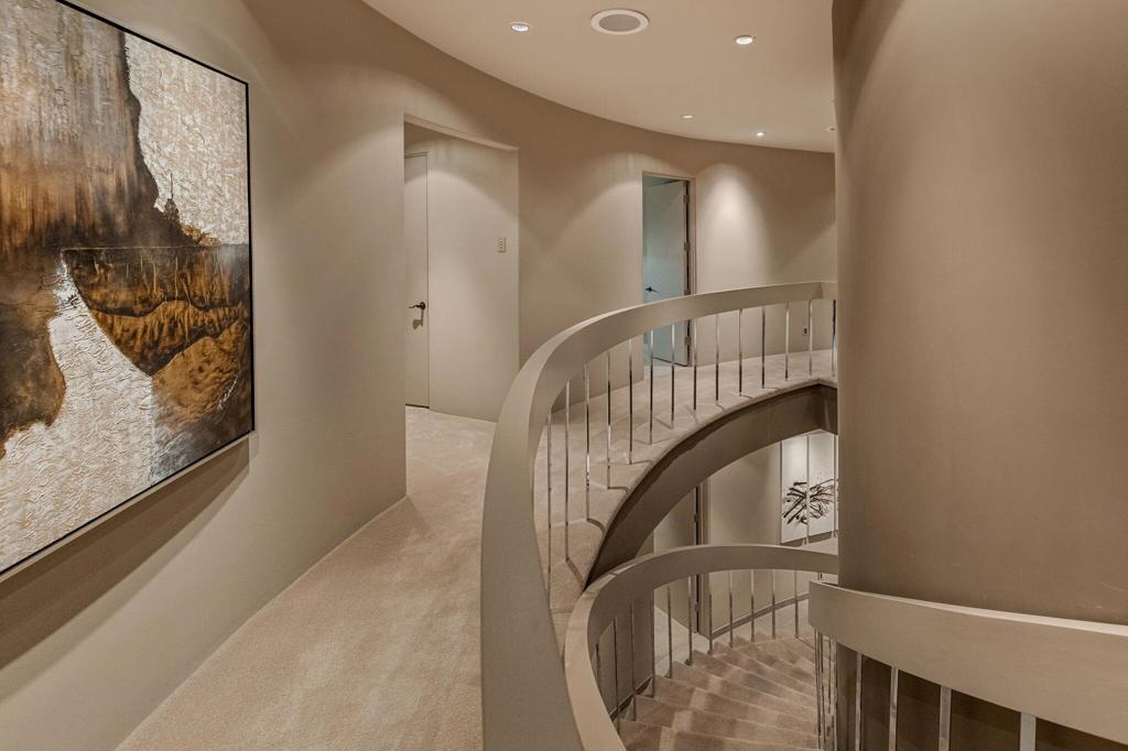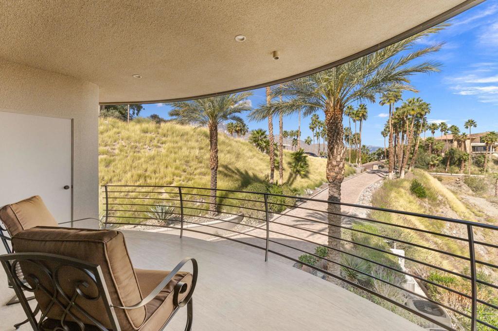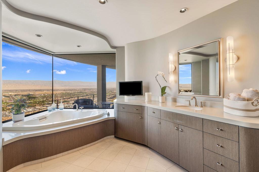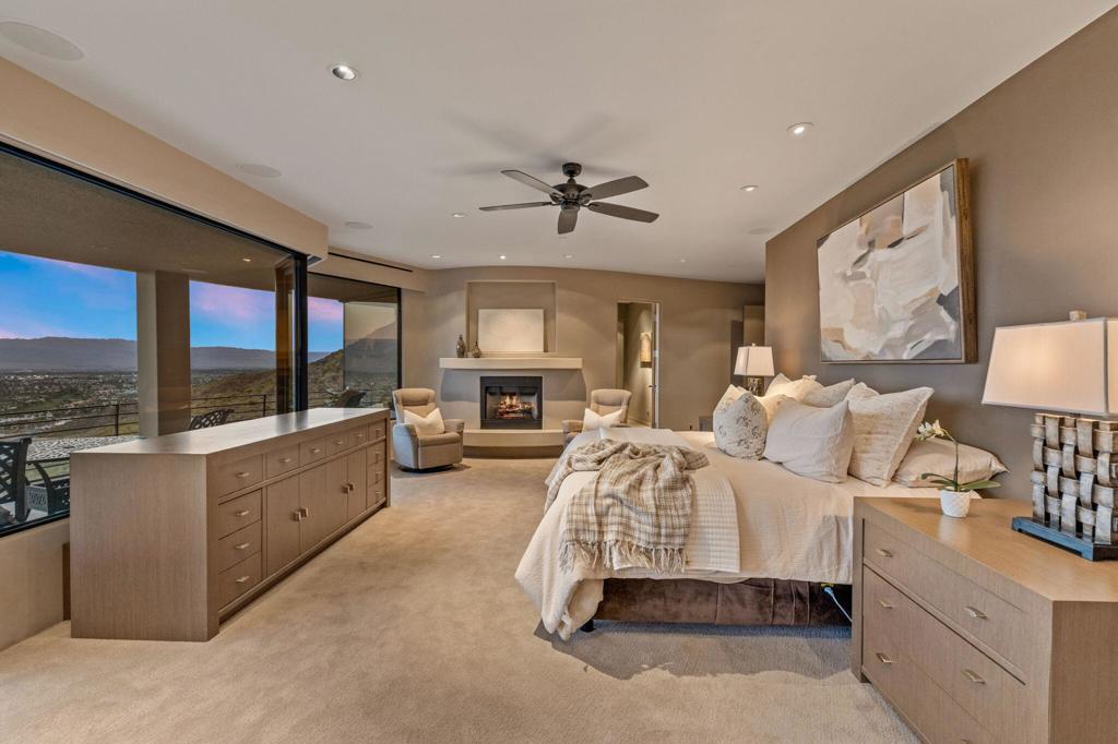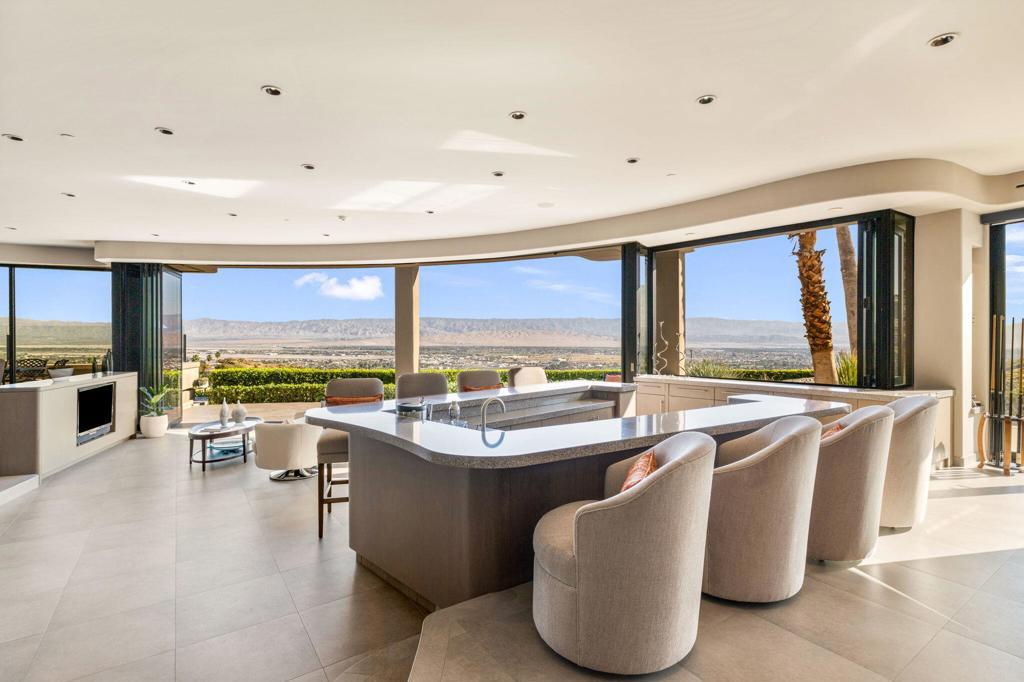 Perched high along the dramatic hillside of the San Jacinto Mountains in the iconic, guard-gated Southridge community, 2400 Southridge -- famously known as ''The Round House'' -- is a striking architectural masterpiece where sculptural design and breathtaking desert vistas converge. Just below the legendary Bob Hope Estate, this extraordinary residence commands sweeping panoramic views of the Coachella Valley, city lights, and endless desert horizons. This home was completely reimagined and rebuilt from the ground up, emerging as a striking expression of architectural innovation. Graceful curves, flowing lines and walls of automated retractable glass panels dissolve the boundaries between indoors and out, framing the surrounding desert landscape like living artwork. The residence offers 5 bedrooms, 9 bathrooms, a private office, and a spectacular 10-person luxury theater, with all bedrooms thoughtfully positioned on the second floor. Accessed by a graceful curved staircase or private elevator, the upper level features private balconies, views from every corner and a truly remarkable primary suite. The primary suite serves as a serene retreat with separate dual spa-inspired bathrooms, a steam shower, soaking tubs set against walls of glass overlooking the desert, a dramatic sundial-inspired walk-in closet and a separate massage room. Designed for grand entertaining and intimate desert living, the main level features a dramatic living room, elegant wet bar, billiards area, dining space, and a gourmet chef's kitchen with butler's pantry and dual built-in wine refrigerators. Every space is oriented toward the spectacular views. Step outside and the property becomes a breathtaking desert sanctuary. A stunning pool and spa sit dramatically at the edge of the mountainside, surrounded by multiple fire pits, two barbecue areas, poolside bath, shower and laundry and sculptural jagged rock walls carved directly into the mountain, creating a setting that feels both luxurious and elemental. Rarely does a home so perfectly blend bold architectural vision, modern luxury, and the raw beauty of the desert landscape. 2400 Southridge is more than a residence -- it is a transcendent experience that must be seen to be fully appreciated. Call today to make your own private showing appointment.