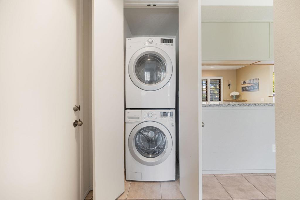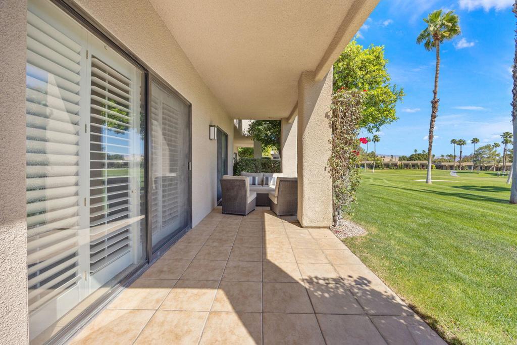 Welcome to resort-style living at Desert Princess. This beautifully positioned 2-bedroom, 2-bath condominium features dual primary suites--each offering spacious walk-in closets and private en-suite baths, ideal for comfort and privacy.The interior is thoughtfully designed with tile flooring throughout the main living and walking areas, complemented by carpeting in the bedrooms for added comfort. The open and spacious kitchen flows seamlessly into the living and dining areas, creating an ideal setting for both everyday living and entertaining. A dedicated in-unit laundry closet includes a stackable washer and dryer for added convenience. Step outside to your back patio and take in the fabulous views of the pool, lush greenbelts, and stunning mountain backdrop--perfect for relaxing or entertaining in a serene desert setting. Additional highlights include a one-car garage and a convenient golf cart parking slab, ideal for easy access to the community's golf and outdoor lifestyle. Desert Princess offers an exceptional array of amenities including a 27-hole championship golf course, fitness center, and a variety of social and golf memberships available. The gated, manned community also features ample guest parking, along with bocce ball, tennis, and pickleball courts, plus a well-appointed clubhouse--creating the ultimate desert lifestyle experience. Ideally located just minutes from Palm Springs International Airport, vibrant downtown Palm Springs, and with easy access to I-10, this home offers both convenience and connectivity. Whether you're seeking a full-time residence, seasonal retreat, or investment opportunity, this home delivers comfort, convenience, and scenic beauty in one of the desert's most desirable communities.