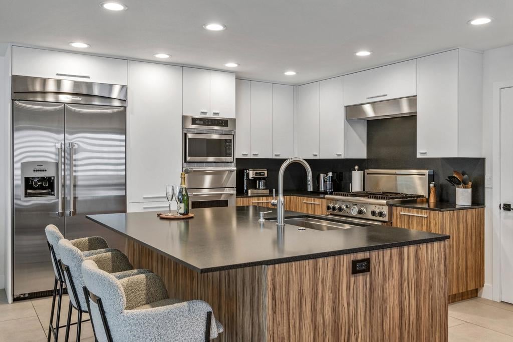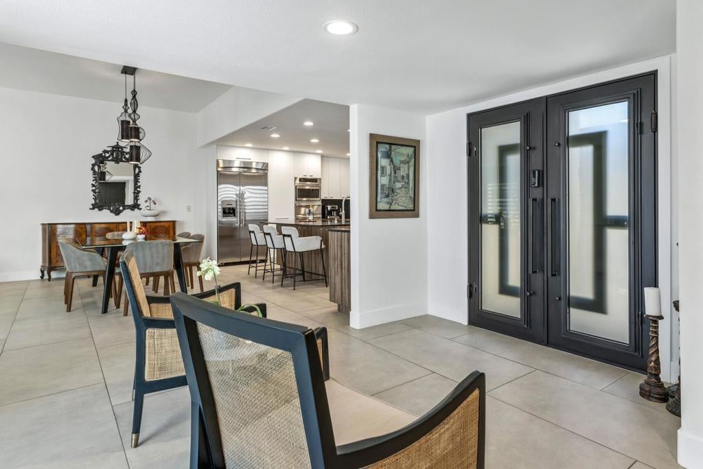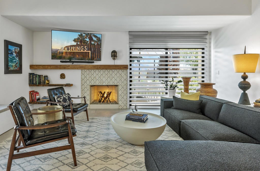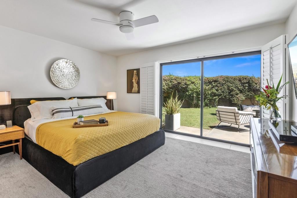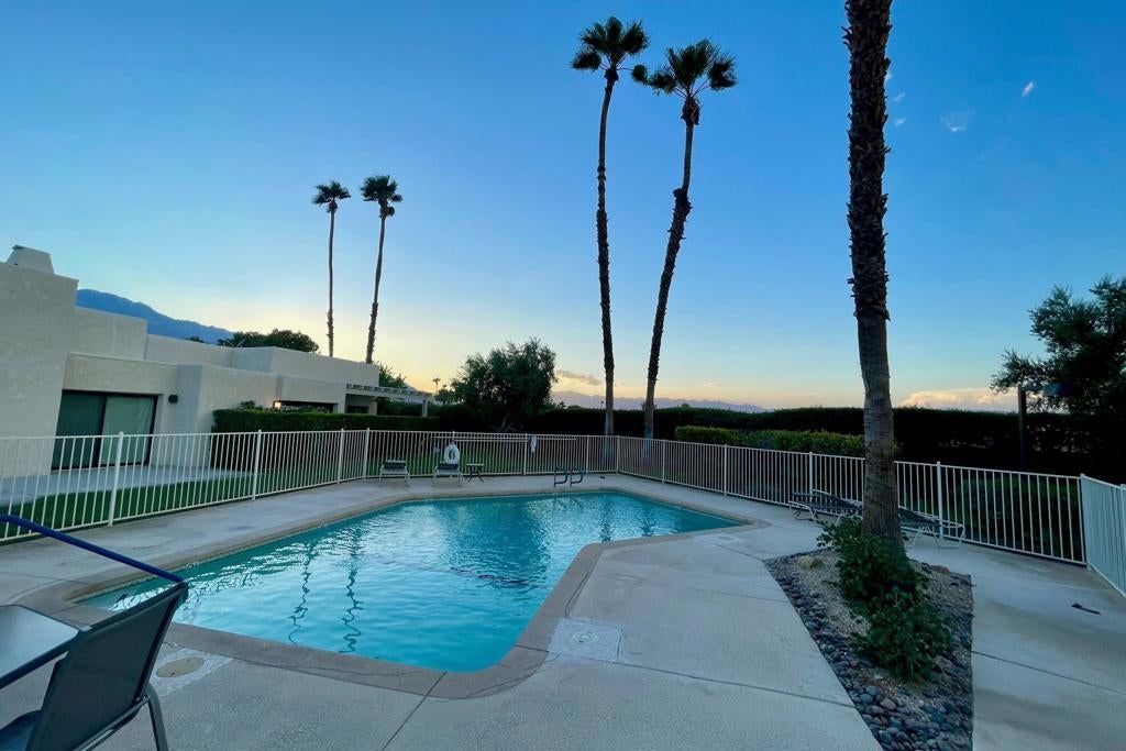 Welcome to Tahquitz Creek Villas--an exquisite blend of refined design and contemporary comfort... This desert retreat has 1,652 square feet of light-filled living.in the heart of South Palm Springs. Set within a gated community framed by the dramatic San Jacinto Mountains, residents enjoy resort-style amenities including three sparkling pools, a spa, and tennis, pickleball, and shuffleboard courts.Completely renovated in 2021-22 with refined craftsmanship and premium materials, this sophisticated condo is truly move-in ready. The reimagined Chef's kitchen is the centerpiece of the home, featuring a spacious island designed for both everyday living and effortless entertaining. High-end Thermador appliances elevate the kitchen, highlighted by a THERMADOR Professional 36'' gas range and matching stovetop, which pairs beautifully with these unique granite countertops a leathered-textured surface for a soft yet inviting feel. Exotic Olivewood veneer cabinetry with soft-close drawers adds warmth and distinctive character.The thoughtful upgrades continue throughout, including dual-pane windows, sliding patio doors, Built-in Security Screens on double front entry doors, Kerr Tile flooring, elegant Tabarka tile on Fireplace, and fresh paint throughout.The same-level primary suite opens directly to a private outdoor oasis with a nearby pool, spa, and BBQ--perfect for relaxed desert evenings or peaceful mornings. The spa-inspired bath features Fina original tiles, dual vanities, expansive counter space, and beautifully organized walk-in closets. Major systems have been updated within the past 2-8 years, including the A/C condenser and a whole-home water filtration system. Completing the home is an attached one-car garage and additional carport, providing convenient and indispensable parking.