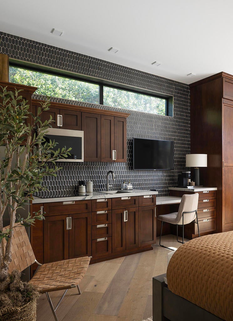 - Interior FeaturesBeamed Ceilings, Breakfast Bar, Furnished, High Ceilings, Bar, Primary Suite