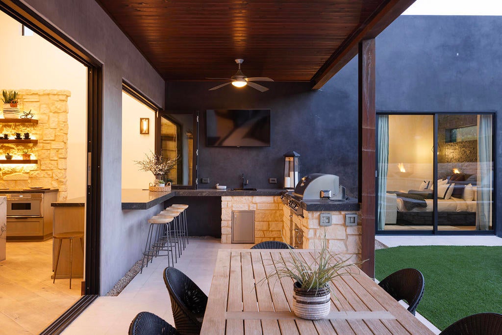 Welcome to ''The Lodge'' at 48750 Avenida El Nido in La Quinta, CA--a desert retreat where modern luxury meets effortless comfort. With its smart design and inviting vibe, this home offers the ultimate blend of sophistication and relaxation. Sold Fully Furnished, Turnkey.Step inside and be greeted by soaring ceilings and an abundance of natural light that creates an open, airy feel throughout the living spaces. The chef's kitchen, complete with a fully-stocked interior bar, is an entertainer's dream, while the in-law suite--with its own full kitchen, washer, and dryer--offers the perfect setup for extended stays or multi-generational living.Outside, the property truly shines. The wrap-around patios showcase breathtaking south and west-facing mountain views and lead to a raised pool, hot tub, and tanning platform. A backyard putting green awaits for golf enthusiasts, while multiple firepits, a lounge area, and citrus trees add to the resort-like ambiance. Whether you're hosting a lively gathering or enjoying a peaceful moment under the stars, this outdoor space is designed to impress.The primary suite is a private haven, featuring a soaking tub, shower, fireplace, and a walk-in closet complete with a charming library ladder. Guest rooms are thoughtfully arranged to provide comfort and privacy, making this home ideal for hosting friends and family. Every detail has been carefully considered, from the 15-foot Fleetwood sliders and limestone tiles to the dramatic torch sconces and cascading waterfall at the entryway. There's even a poolside bathroom for ultimate convenience. ''The Lodge'' isn't just a home--it's a lifestyle. Here, you'll experience the best of desert living, all within a setting designed to inspire and relax. Ready to make Luxury a part of your La Quinta lifestyle?