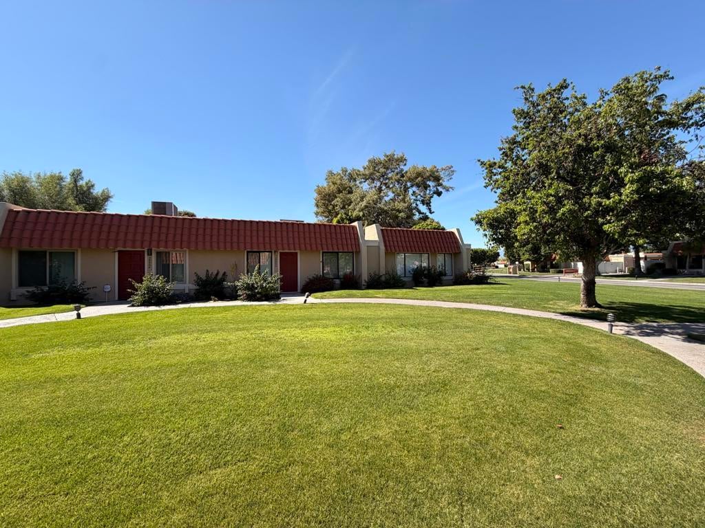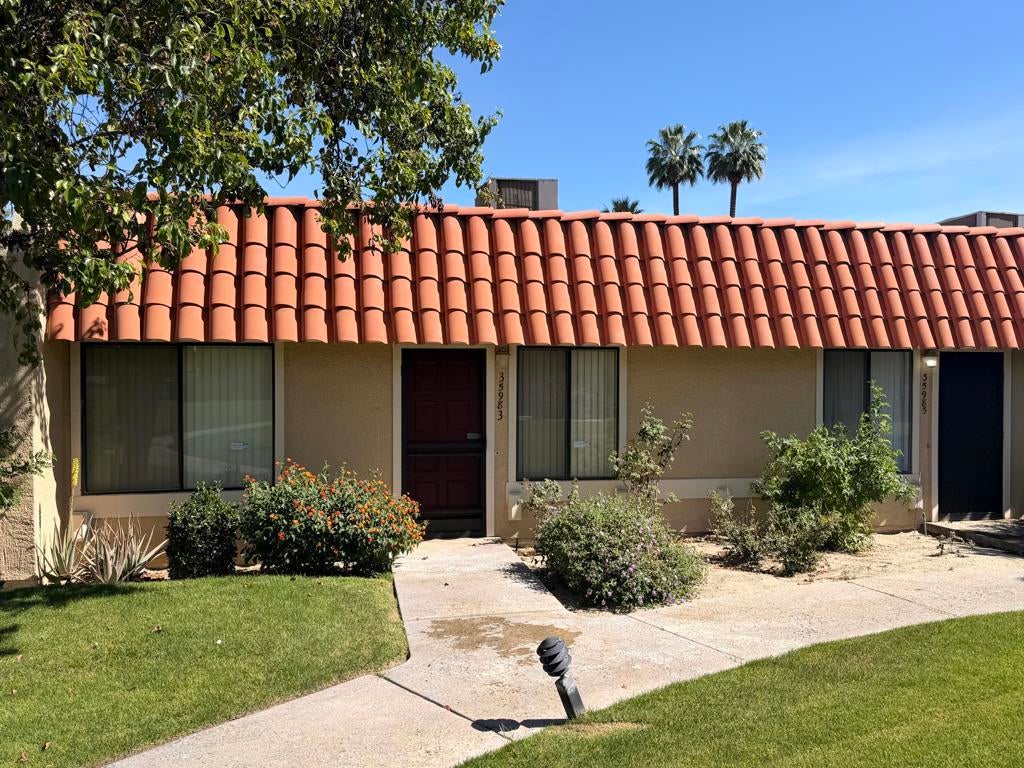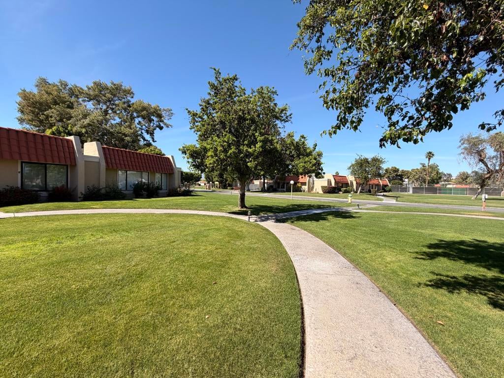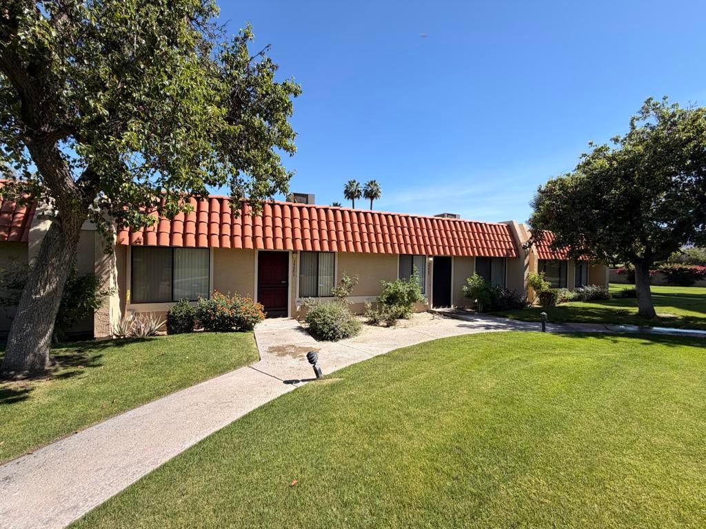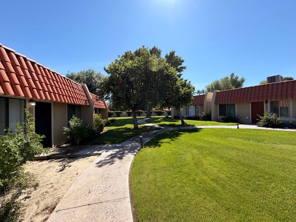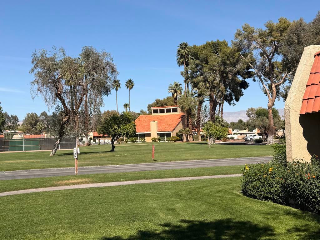 Amazing property in Mountain View Villas. Perfect for singles, couples, or families, this inviting condo is ideally located near the pools, clubhouse, pickleball courts, and convenient parking, allowing you to fully enjoy the beauty and relaxed lifestyle of this wonderful community. This clean, two-bedroom, two-bath condo is located in the heart of Mountain View Villas in Rancho Mirage, offering a peaceful setting surrounded by beautifully maintained, park-like grounds. Mountain View Villas is a gated community known for its exceptional amenities, including five pools, four spas, seven lighted pickleball courts, three lighted tennis courts, and a welcoming clubhouse designed for relaxation and social gatherings. The home features indoor laundry, a private patio accessible from both the living room and the primary bedroom, and covered parking conveniently located just outside the patio. HOA dues include cable TV, internet, and trash service, providing added value and convenience. Ideally situated near shopping, dining, and entertainment, and just minutes from the exciting new Cotino Disney community, this property offers comfort, convenience, and the best of desert living in Rancho Mirage. Discover the charm and serenity of Mountain View Villas, a true hidden gem in the Coachella Valley. Please call for rental restrictions. The property is on leased land with a private lessor. A lease buyout option is available for $175,000 in addition to the purchase price. Please call to inquire. Professional photos coming soon.