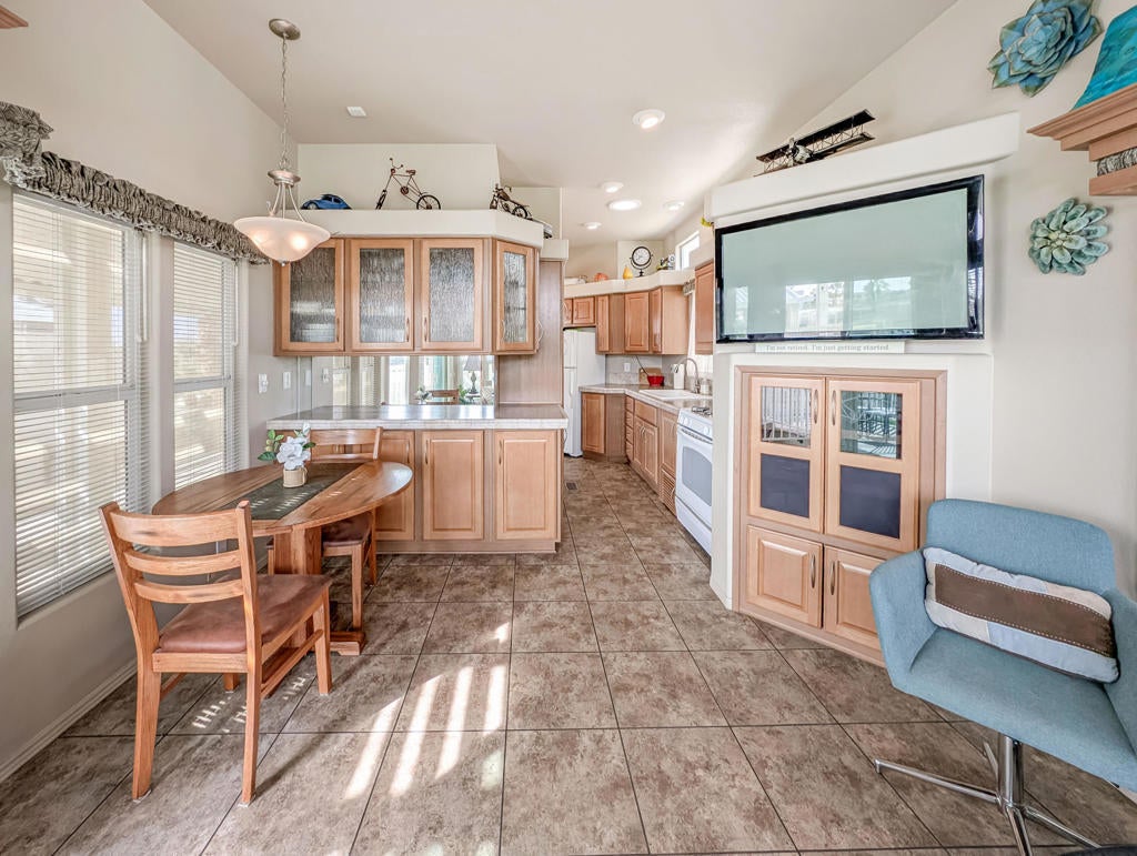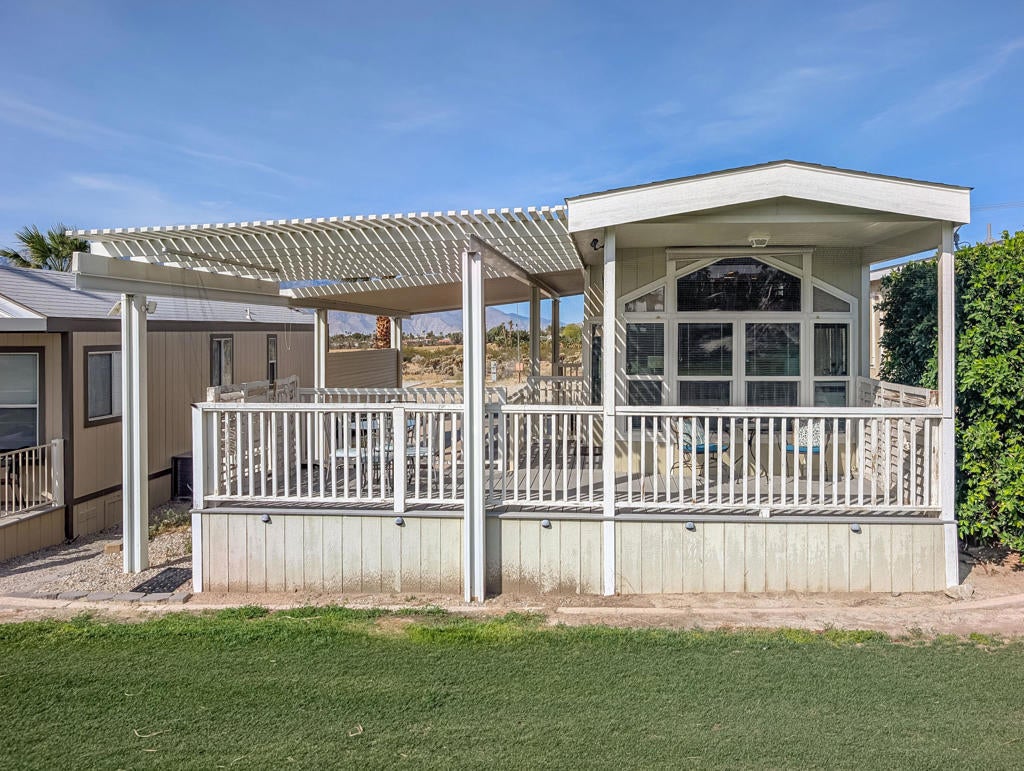 This stunning 2013 Cavco Park Model features around 400 square feet of living space, including one bedroom and one bathroom. High ceilings, modern finishes, and plenty of natural light give the home an inviting and spacious feel. It comes fully furnished, so you're ready to settle in or start your next adventure right away. Outdoors, a roomy covered carport and shed greet you at the front with excellent views of Mt. San Jacinto. The wind-protected, covered back deck faces the desirable 4th hole of the golf course, along with scenic ponds and rolling hills--perfect for unwinding. Caliente Springs is a luxurious 55+ resort community boasting mineral hot spring pools and spas, a 9-hole golf course, water ball, water aerobics, yoga, eight pickleball courts, tennis courts, and many other amenities. Please note that the lot is leased, with space rent set at $950 per month.