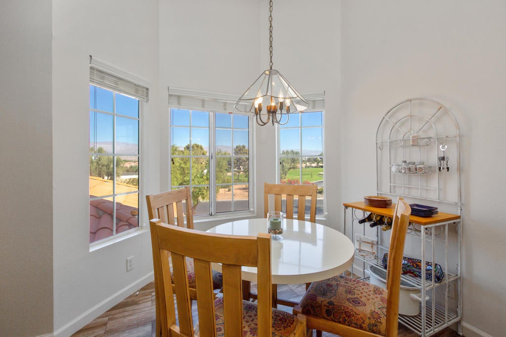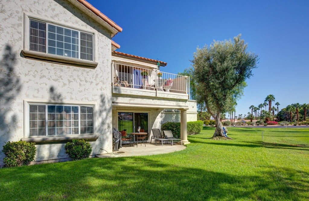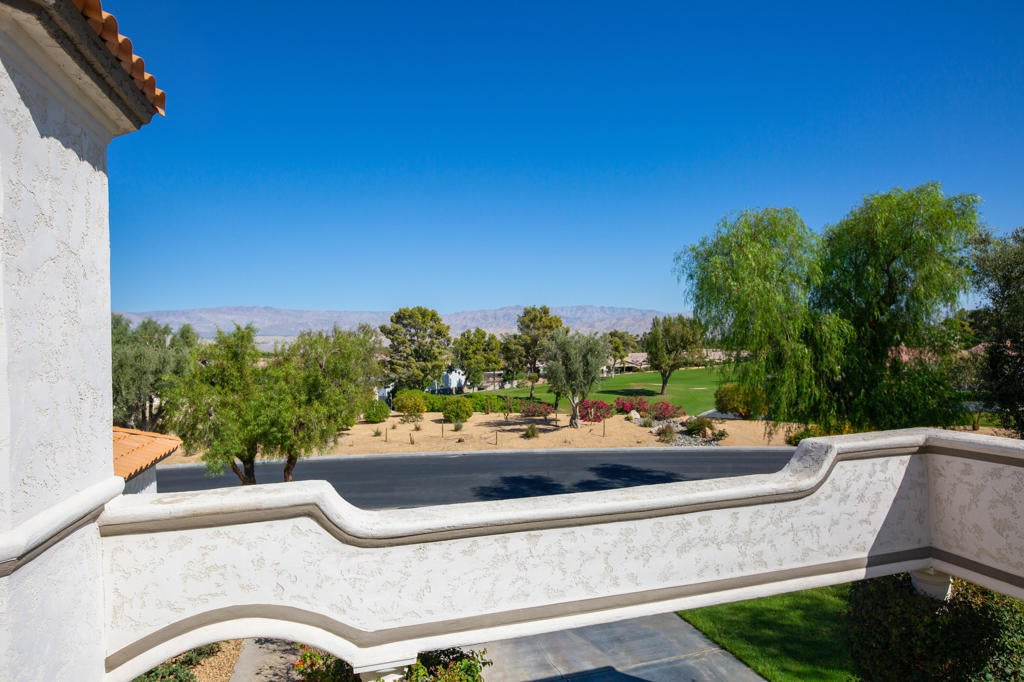 STUNNING is what best describes this Special Home!! With breathtaking views throughout you are mesmerized by the views from every room. The Chocolate Mountains from the North and the Sant Rosas & San Jacinto to the South/West. This rare, upstairs end unit offers unobstructed views from all rooms is hard to find. This lovely home offers a remodeled kitchen with granite counters, plank tile flooring, cabinets and ceramic tile throughout main area. New high-quality bedding and mattresses, all new fixtures in bathrooms, newer Berber carpet in the bedrooms, all freshly painted with a designer's touch. The HVAC has recently been replaced. New Hot Water Furnace in 2024. Desert Falls Country Club is a highly desirable club that offers a resort lifestyle. Links-style golf course, State of the Art Health & Fitness Center, tennis, pickle ball and bocce ball. Nearby shopping on El Paseo, fine Restaurants, McCallum Theatre, art galleries, The Living Desert, and numerous hikes throughout our beautiful desert. Centrally located to Los Angeles, San Diego, and Big Bear a perfect getaway with family and friends! Investors this is for you too! Short Term Rentals are permitted in the Villas. Call today for a private tour.