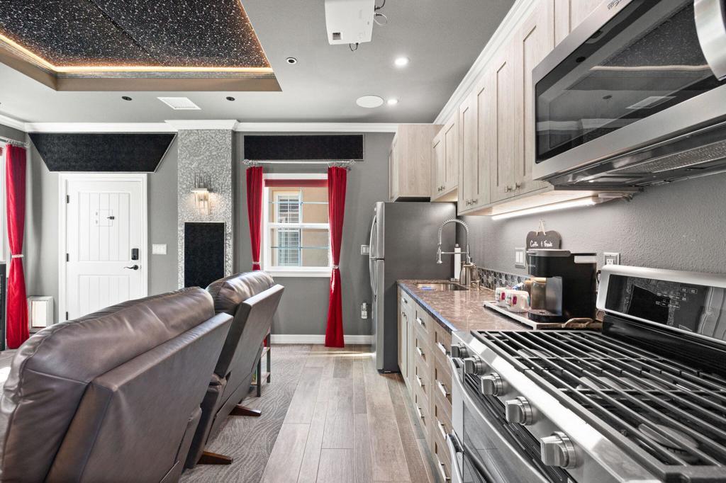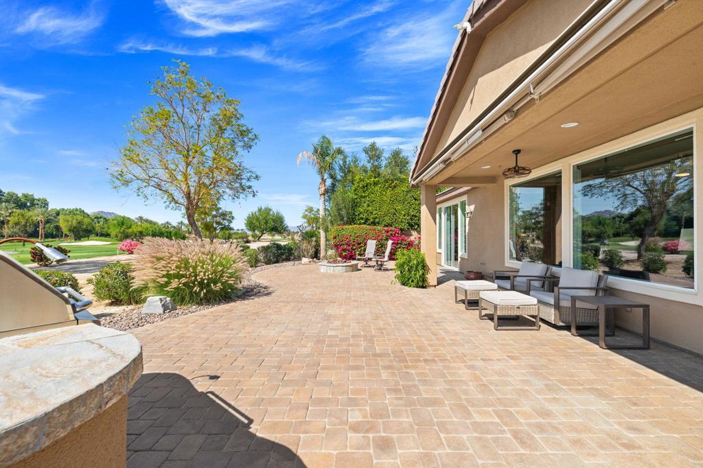 Absolutely one of the best views in this Trilogy La Quinta 55+ gated community! This is a VERY rare and unique property! It is the ONLY 4 bedroom most desired Monterey floor plan that includes a newly built (2023) custom detached guest house casita that is legally permitted as an Accessory Dwelling Unit (ADU). It makes a great granny/caregiver flat or it can be rented for 30+ days for $1,200 to $2,800 a month or more depending on the season. The main house has 3 bedrooms and 2 baths and has been completely remodeled from top to bottom with high-end finishes including a newly renovated master bedroom and ensuite bath as of October 2025. Upgrades include a new Lennox AC, Milgard windows throughout, new lighting, black-out curtains in the master and great room, large electric awning, plantation shutters, roller shades, crown molding in all rooms, luxury vinyl plank flooring, wood laminate and porcelain tile in every room. The newly remodeled kitchen has high end ''Champaign'' finished cabinetry including roll outs, soft close drawers and doors, glass backsplash, granite counters, upper cabinet rope lighting, under-cabinet lighting, and a custom pantry door with LED remote controlled back-lighting. There are 10 new designer ceiling fans throughout, including the kitchen, baths, patio, and garage. The great room has a newly remodeled fireplace and mantel with under-mantel rope lighting. The courtyard that separates the house from the casita has a contemporary water feature and a new concrete overlay deck. The detached casita includes a home theater with both a 120'' motorized movie screen and a 65'' flat panel TV, a full kitchen (except dishwasher), laundry room, and a separate bedroom. The casita bath has a large walk-in shower with multiple shower heads with a digital timer and temperature readout. The galley style kitchen has all Whirlpool appliances including a 5 burner double oven range, a microwave, a 2 door refrigerator with ice maker, and a stainless steel sink. The casita boasts both high-end porcelain plank flooring and plush carpeting. The back yard is spacious enough for a large pool/spa or water feature. Garage includes epoxy floors, high-end 'New Age'' 8 gauge steel cabinets, 2 work benches with stainless steel tops, overhead storage racks and wall organizer. Price includes 2 Denon home theater A/V amplifiers, a 4K projector, and a 120' motorized screen. Seller will pay the 1 time HOA's Reserve Assessment Fee of $3,570. Owner is the listing broker