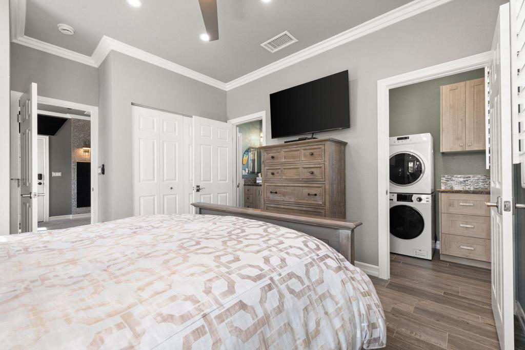 - Interior FeaturesBreakfast Bar, Built-in Features, Block Walls, Crown Molding, Separate/Formal Dining Room, High Ceilings, Open Floorplan, Phone System, Recessed Lighting, All Bedrooms Down, Bedroom on Main Level, Dressing Area, Instant Hot Water, Main Level Primary, Utility Room, Walk-In Closet(s), Pull Down Attic Stairs