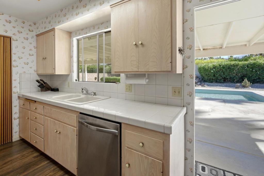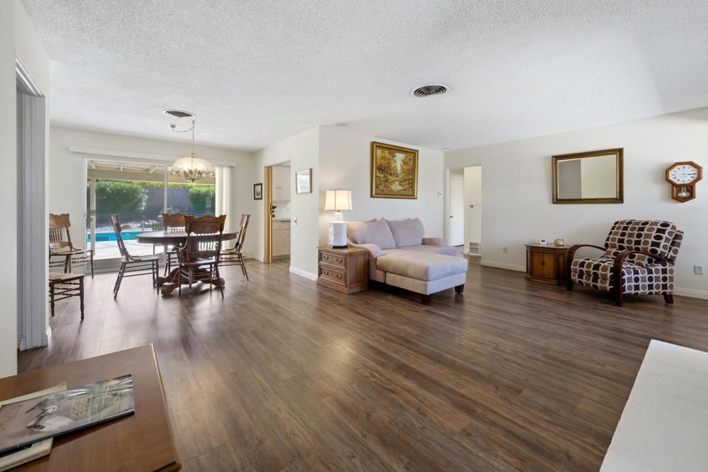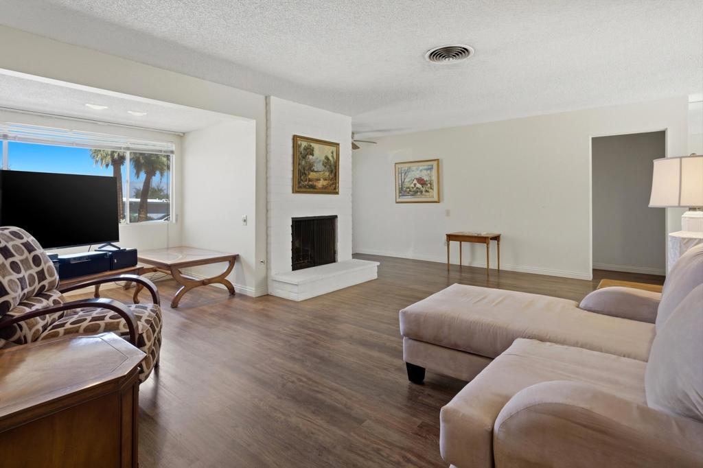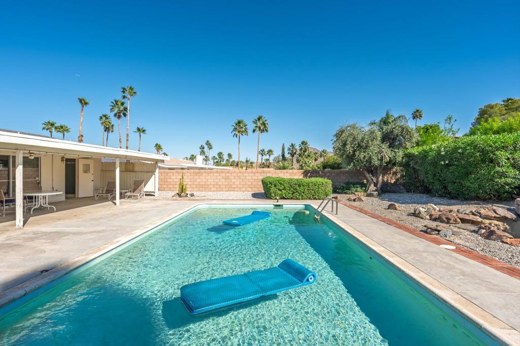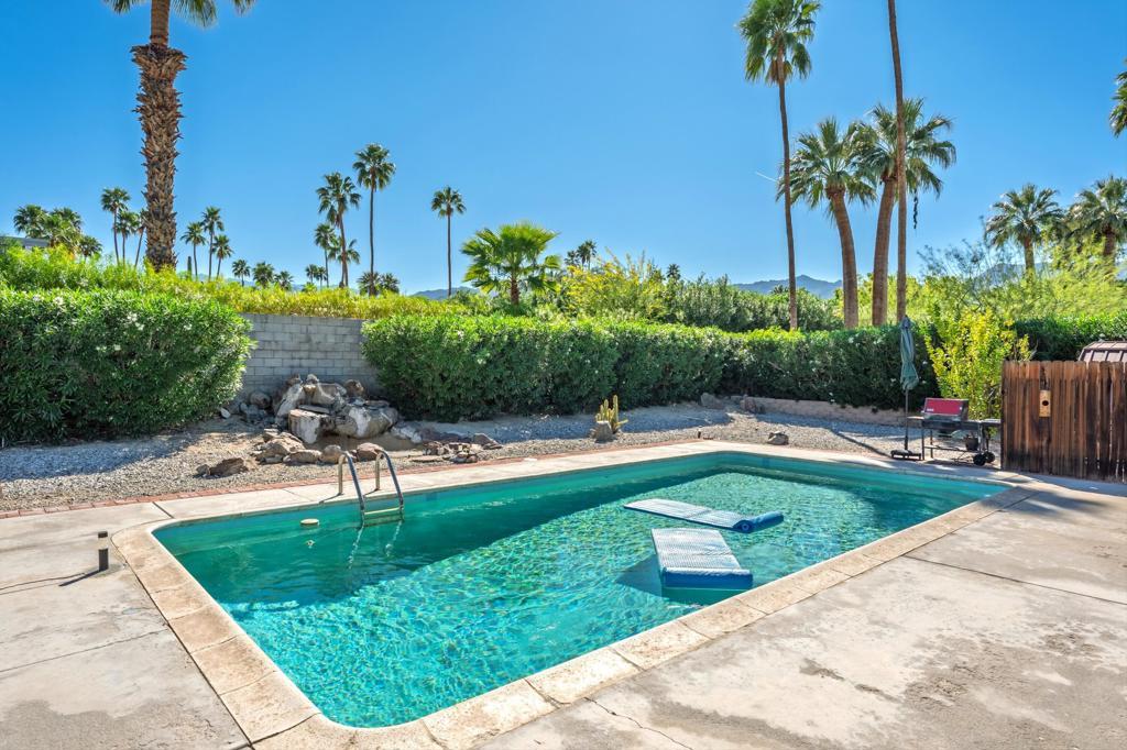 Welcome to the highly sought-after neighborhood of Silver Spur Ranch in South Palm Desert. This mid- century two- bedroom, two-bath home offers approximately 1500 square feet of living space and sits on a spacious lot with a desirable south-facing backyard.Inside you'll find a home full of character with original finishes and a spacious open floor plan. The living room is centered around a charming brick-accented fireplace and complemented by large windows that flood the space with natural light. Both bedrooms are generously sized, with one offering convenient access to the front yard and the other providing direct access to the backyard ideal for enjoying indoor-outdoor desert living.The kitchen features a functional layout with some updated appliances and seamless access to the backyard, making it perfect for entertaining. Step outside to experience desert living at its finest. The backyard is highlighted by a large pool with decorative rock waterfall, mature landscaping, and beautiful views. A covered patio provides the perfect setting for relaxing or hosting gatherings while enjoying the warm desert sunshine. The location is a true highlight of this home, ideally situated near Ironwood Park, the renowned Living Desert Zoo and Gardens, and the world-famous El Paseo Shopping District. Enjoy convenient access to premier shopping, dining and outdoor recreation- all just minutes away. This home presents a fantastic opportunity to add your own personal touches and create the ultimate desert retreat.