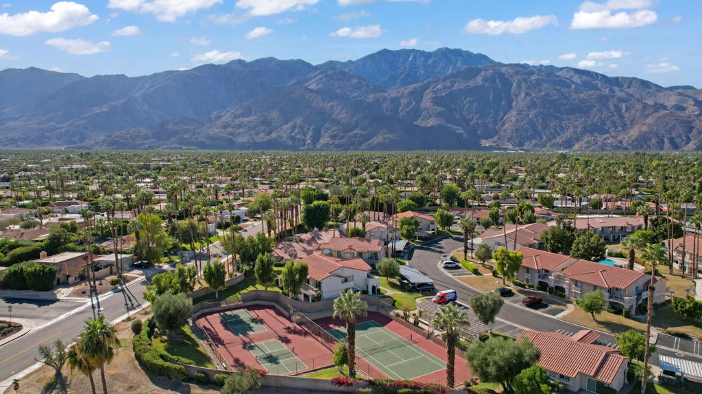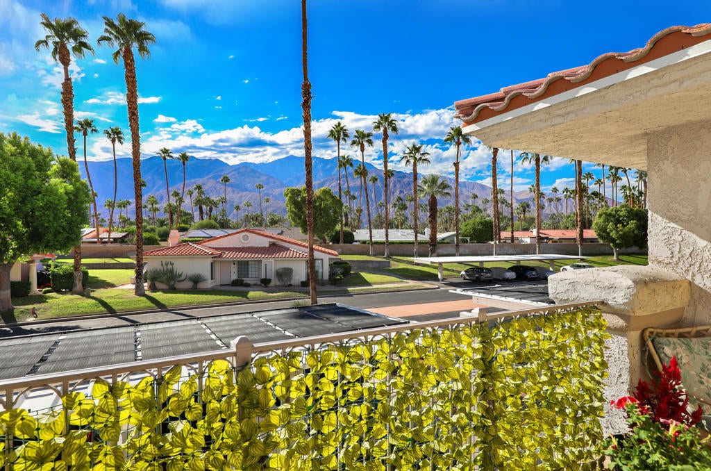 Beautifully updated upper-level 2-bedroom, 2-bath condo with stunning mountain views, nestled in the desirable Mesquite Country Club! This light and airy unit features recessed lighting, high ceilings, custom window coverings, and an open floor plan. The remodeled kitchen boasts granite countertops, stainless steel appliances, and luxury vinyl flooring throughout (except baths). Both bathrooms have been tastefully updated. The spacious primary suite offers a private balcony perfect for enjoying morning coffee and peaceful views. The guest bedroom also enjoys magnificent mountain views and its own balcony! Additional highlights include a newer HVAC ( Furnace & Airco ) installed 1 year ago). Mesquite CC offers an exceptional lifestyle with five pools and spas, tennis and pickleball courts, and the scenic 110-acre Prescott Preserve just beyond the gates. Low HOA dues, fee land, and short-term rental friendly (7-day minimum). Close to dining, shopping, and downtown Palm Springs. Ideal as a primary home, vacation retreat, or investment property. Call today!