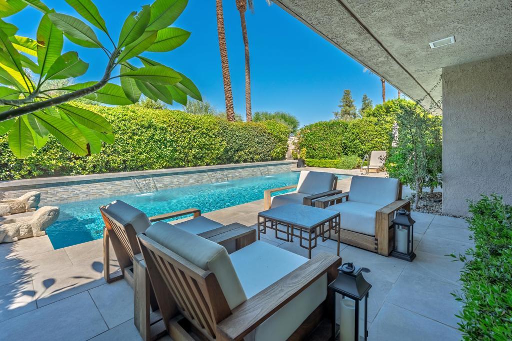 Welcome to 46 Princeton Drive, where sophistication meets relaxation in the prestigious Springs Country Club in Rancho Mirage. This elegantly updated Cypress Point model blends modern luxury with the quintessential desert lifestyle. Featuring an open-concept layout with 3 bedrooms and 3 bathrooms, this home offers effortless flow, refined finishes, and stunning mountain views.Step into a bright, airy living space enhanced by Italian tile flooring, electronic window treatments, and a beautifully remodeled chefs kitchen complete with stainless steel appliances and contemporary design. The thoughtfully redesigned, spa-inspired bathrooms boast custom cabinetry, elevated fixtures, and timeless sophistication.Outside, the west-facing backyard is a private resort-style sanctuary. Enjoy a luxurious Tessera pebble-tec saltwater lap pool, cascading waterfall, and color-changing LED lighting--an entertainer's dream framed by unobstructed views of the San Jacinto and Santa Rosa Mountains. With all-new landscaping and hardscaping, this outdoor oasis is magical day or night.Residents of The Springs Country Club enjoy a guard-gated community with exceptional amenities, including an 18-hole Desmond Muirhead signature golf course, 9 tennis courts (3 lit, 2 clay), 12 pickleball courts, 2 bocce courts, full-service spa and fitness center, and a newly renovated clubhouse. Dine in style at the elegant Springs Restaurant or unwind at the casual Oasis Cafe. Homeowners dues include Social Membership, restaurant access, 46 community pools, cable & internet, gated security with home alarm monitoring, exterior maintenance, roof, fire, liability and more!Experience elevated desert living in one of Rancho Mirage's most sought-after communities--a perfect blend of luxury, leisure, and lifestyle. Call today for your private showing! The Springs is where you belong!