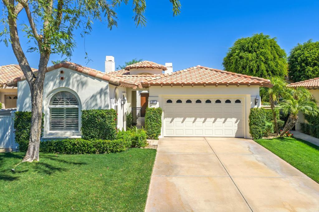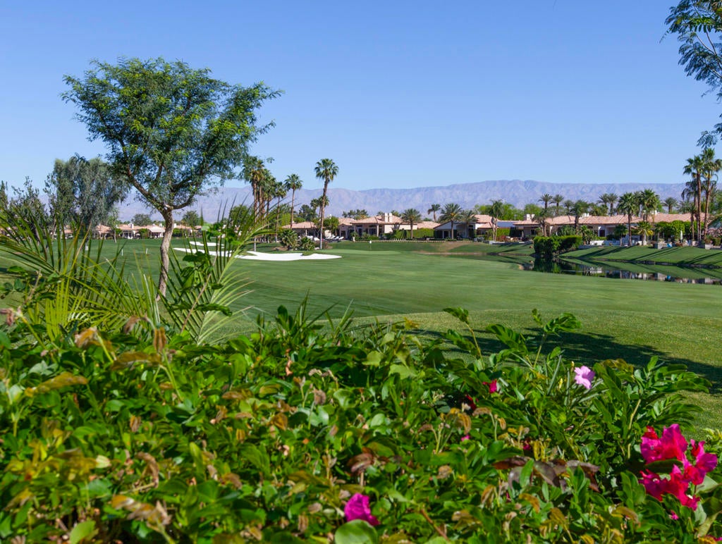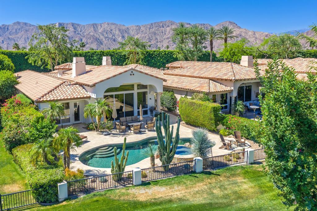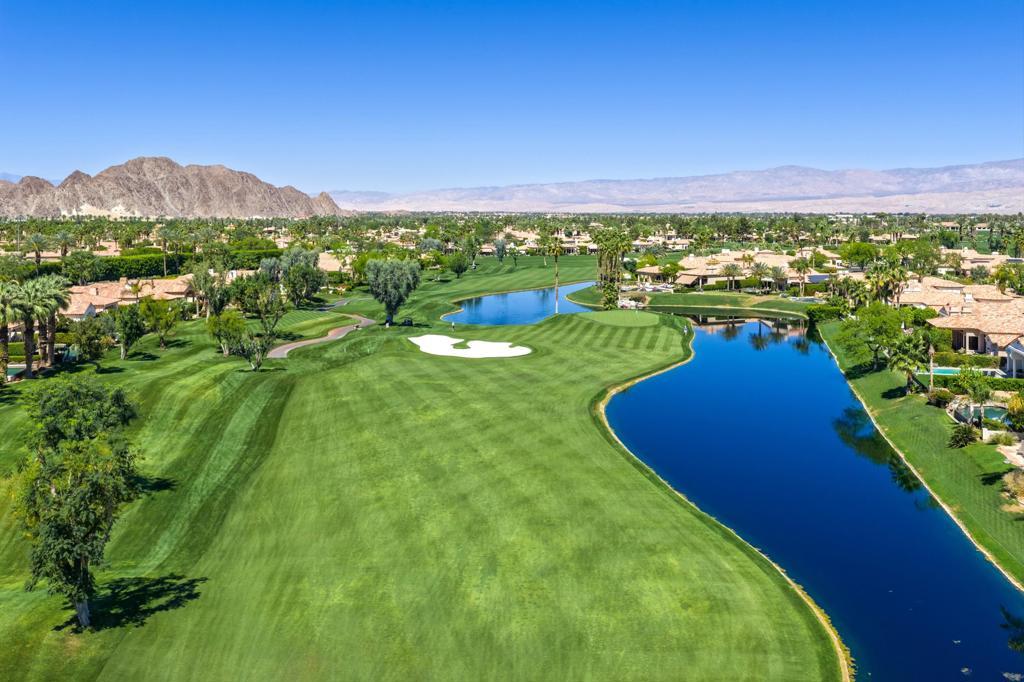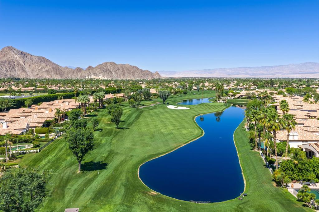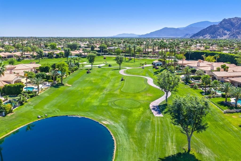 Set behind the prestigious gates of Rancho La Quinta Country Club, this exceptional updated desert residence embodies elevated luxury, where timeless architecture and curated upgrades harmonize with a breathtaking natural setting. Perched above the emerald fairways of the renowned Robert Trent Jones Jr. Championship Golf Course, the home captures sweeping golf course, tranquil lake, and mountain vistas that transform beautifully from sunrise to sunset.A private courtyard arrival, framed by lush professional landscaping and ambient lighting, sets a tone of understated elegance. Chipped-edge travertine pathways lead to a custom wood entry door, opening to a light-filled interior designed for both relaxed living and sophisticated entertaining. Inside, soaring ceilings and an open-concept layout create a sense of space and flow, complemented by high-fired ceramic flooring that extends throughout. Custom interior paint and designer lighting add warmth and refinement, while the expansive family room--anchored by a bespoke entertainment wall and one of two updated fireplaces--offers an inviting gathering space.The remodeled kitchen is both stylish and functional, featuring premium Corian countertops, a custom backsplash, and beautifully refinished cabinetry. A generous center island with pendant lighting serves as the heart of the home, complemented by stainless steel appliances including double ovens, dishwasher, microwave, and refrigerator. Seamless indoor-outdoor living defines the residence. Walls of glass open to an extraordinary patio with a custom curvilinear pool, elevated spa, and cascading waterfall. A BBQ island invites effortless entertaining, while a low-profile fence preserves uninterrupted golf course views.A detached two-room casita offers flexible guest accommodations, while the main home showcases quality finishes throughout, including raised panel solid core doors, custom shutters, tailored shades, and new LED lighting. Additional highlights include two updated fireplaces, extensive system upgrades, and a finished two-car garage with epoxy flooring, air conditioning, and built-in storage. Please see Improvements List.This refined desert sanctuary offers privacy, panoramic beauty, and an exceptional lifestyle in one of La Quinta's most coveted communities.