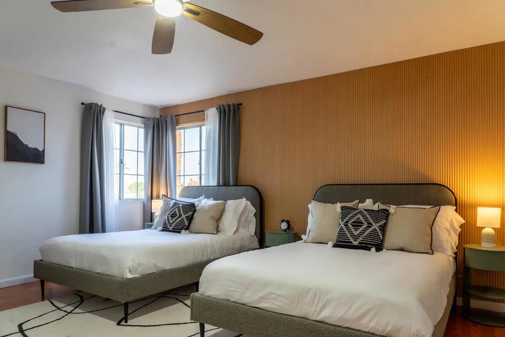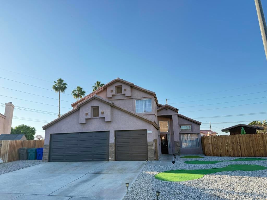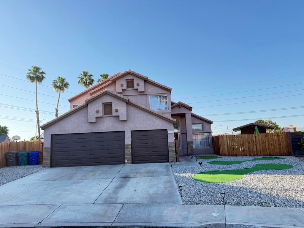 Welcome to this stunning 5-bedroom, 3-bath home offering over 2,200 sq. ft. of beautifully designed living space. This turnkey, fully furnished and equipped residence is perfectly situated in a prime Indio Central location with no HOA, blending modern comfort, style, and exceptional investment potential.Step inside to a welcoming main floor featuring a spacious family room that flows seamlessly into the delightful kitchen. The kitchen offers an island with recessed lighting, ample counter space, and a cozy dining area where you can enjoy the warmth of the fireplace during cooler winter evenings.The second floor features four well-appointed bedrooms and two updated modern bathrooms. The elegant primary suite opens to a private balcony--an ideal spot to unwind and take in breathtaking sunsets and mountain views.Your backyard oasis truly lives up to its name: ''Fun in the Sun.'' Enjoy a sparkling saltwater pool and spa, perfect for refreshing dips or relaxing soaks. Entertain with ease using the built-in barbecue grill, outdoor TV, and comfortable poolside seating--an ideal setup for gatherings with friends and family.A dream for investors and homeowners alike. Whether you're seeking a full-time residence, a vacation retreat, or a short-term rental opportunity, this home is ready to perform. Owners had good revenue on Airbnb in 2025. Sold furnished or unfurnished--your choice.Located near world-renowned attractions including the Indian Wells Tennis Garden, Festival Fairgrounds, Acrisure Arena, top-rated restaurants, and premier shopping destinations.Buyers win--this charming, income-producing home is ready for you. Bring your offer and step into a thriving business or your next beautiful home.